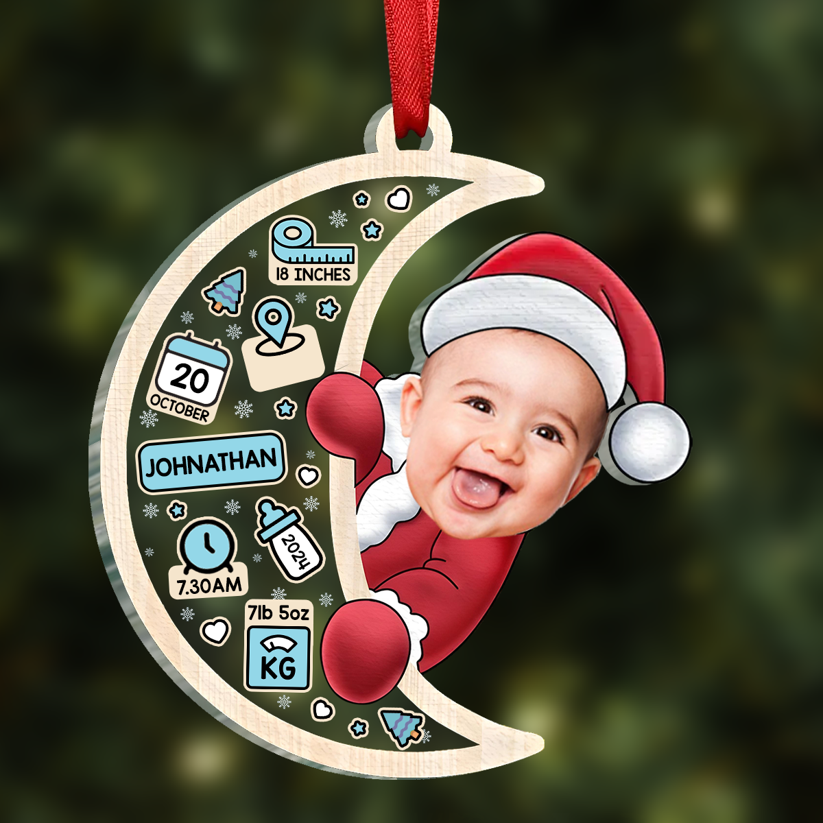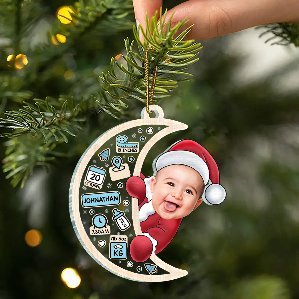 Custom Photo Christmas Santa Baby Birth Stats - Personalized Acrylic Ornament