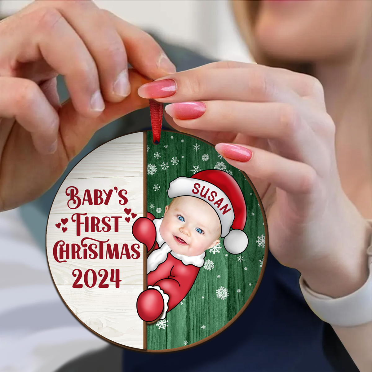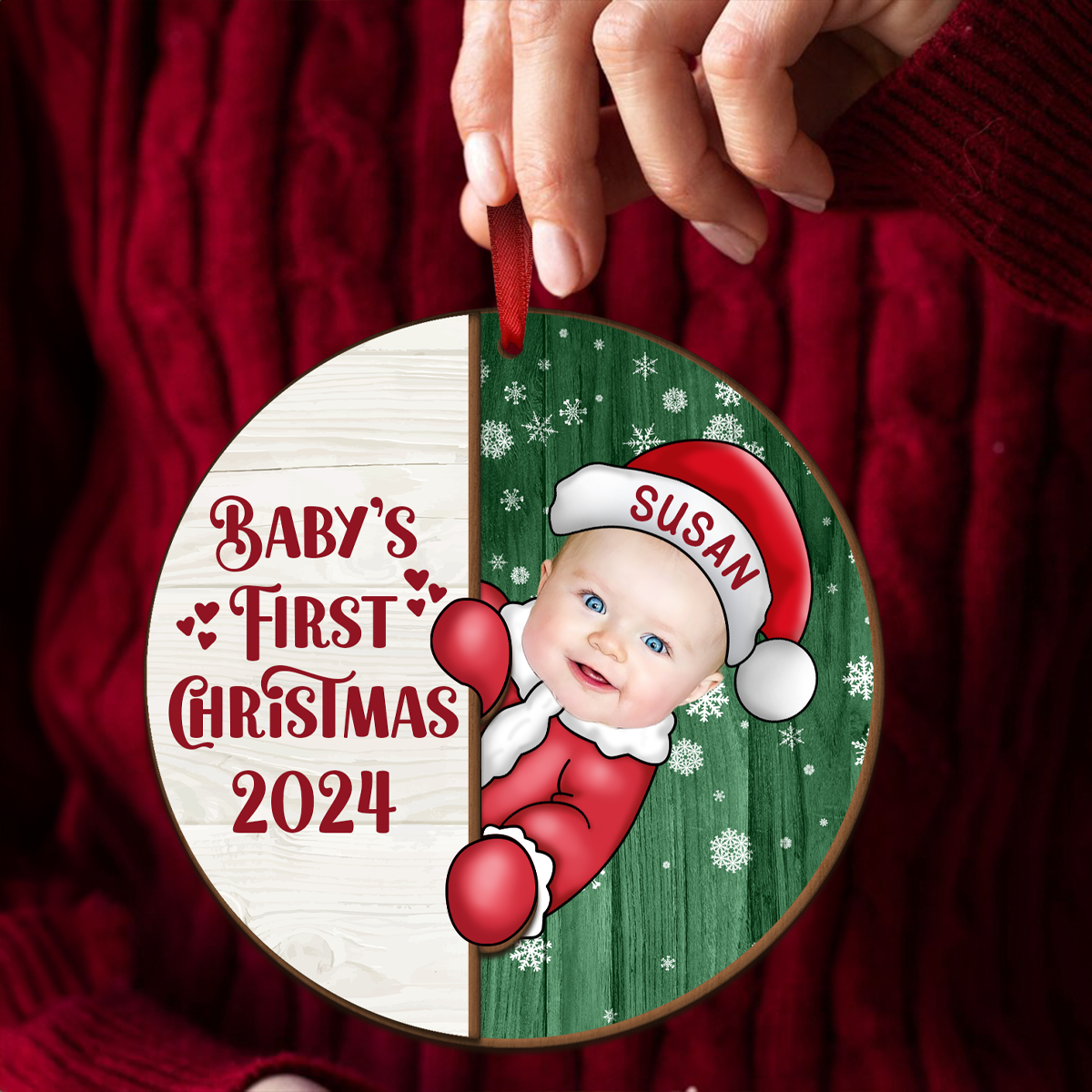 Custom Photo Christmas Santa Baby - Personalized Wooden Ornament