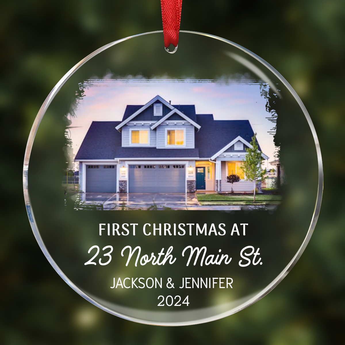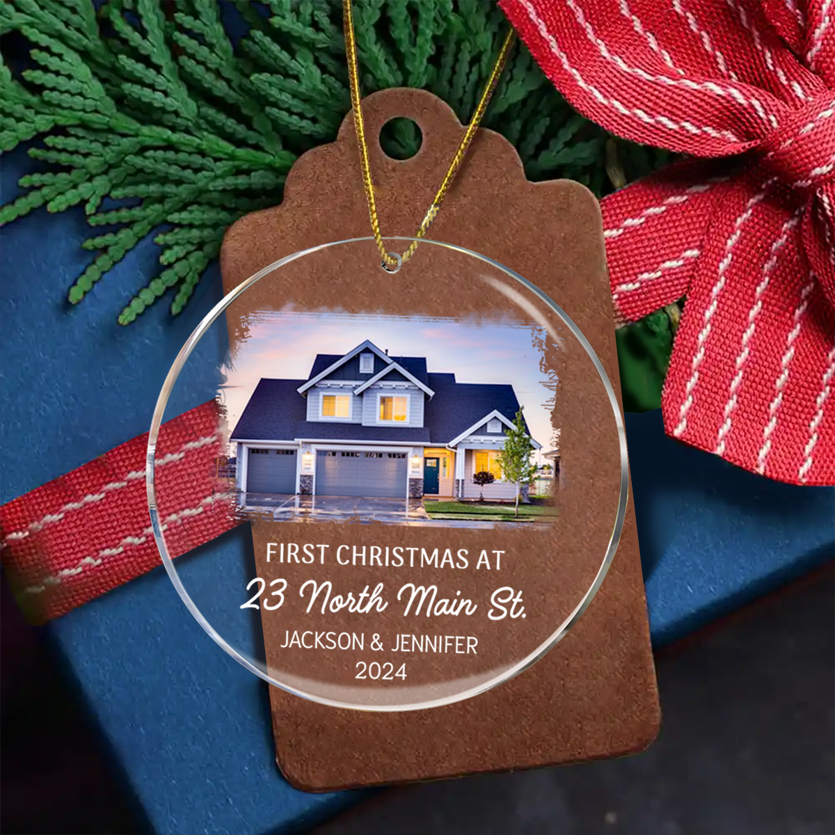 Custom Photo First Christmas At New Home Couple Family - Personalized Circle Acrylic Ornament