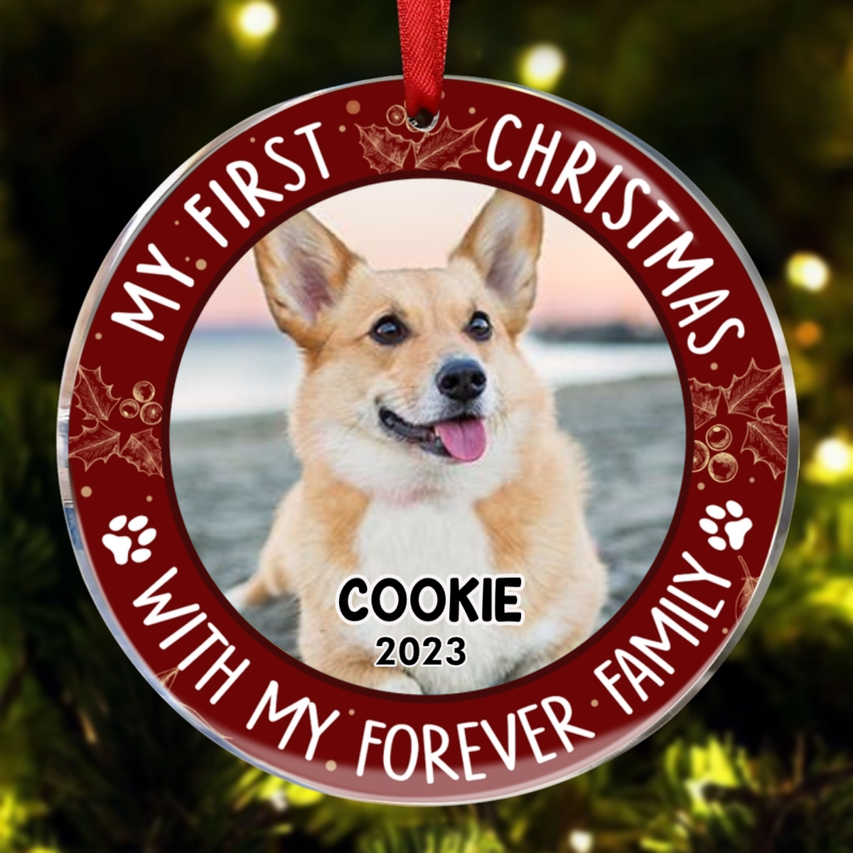 Custom Photo First Christmas Pet Lovers - Personalized Circle Acrylic Ornament