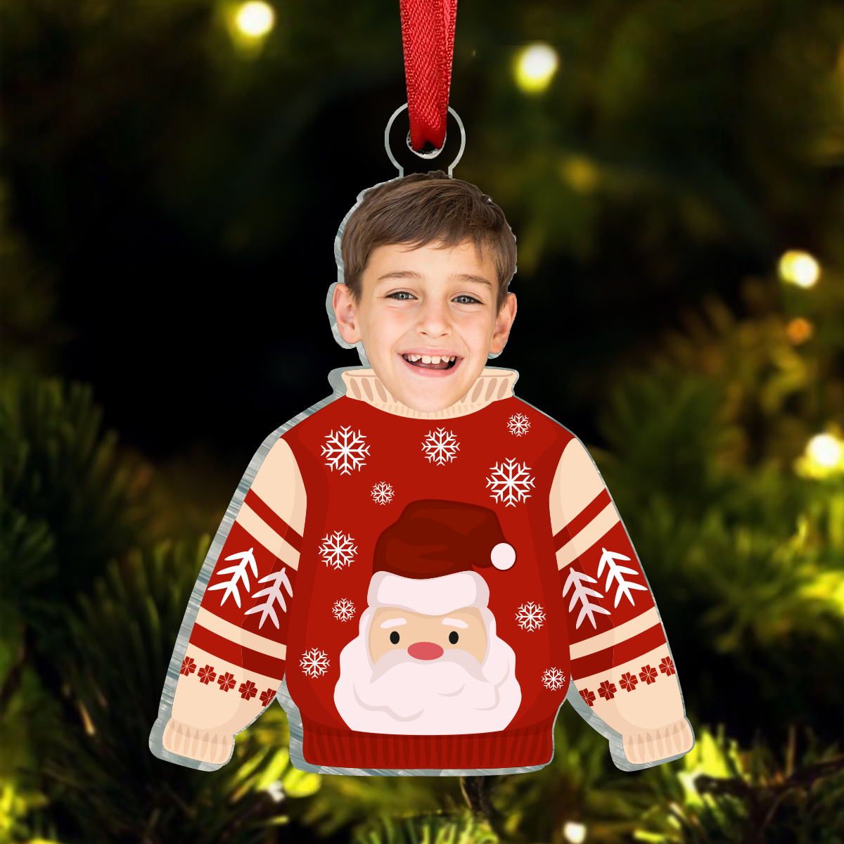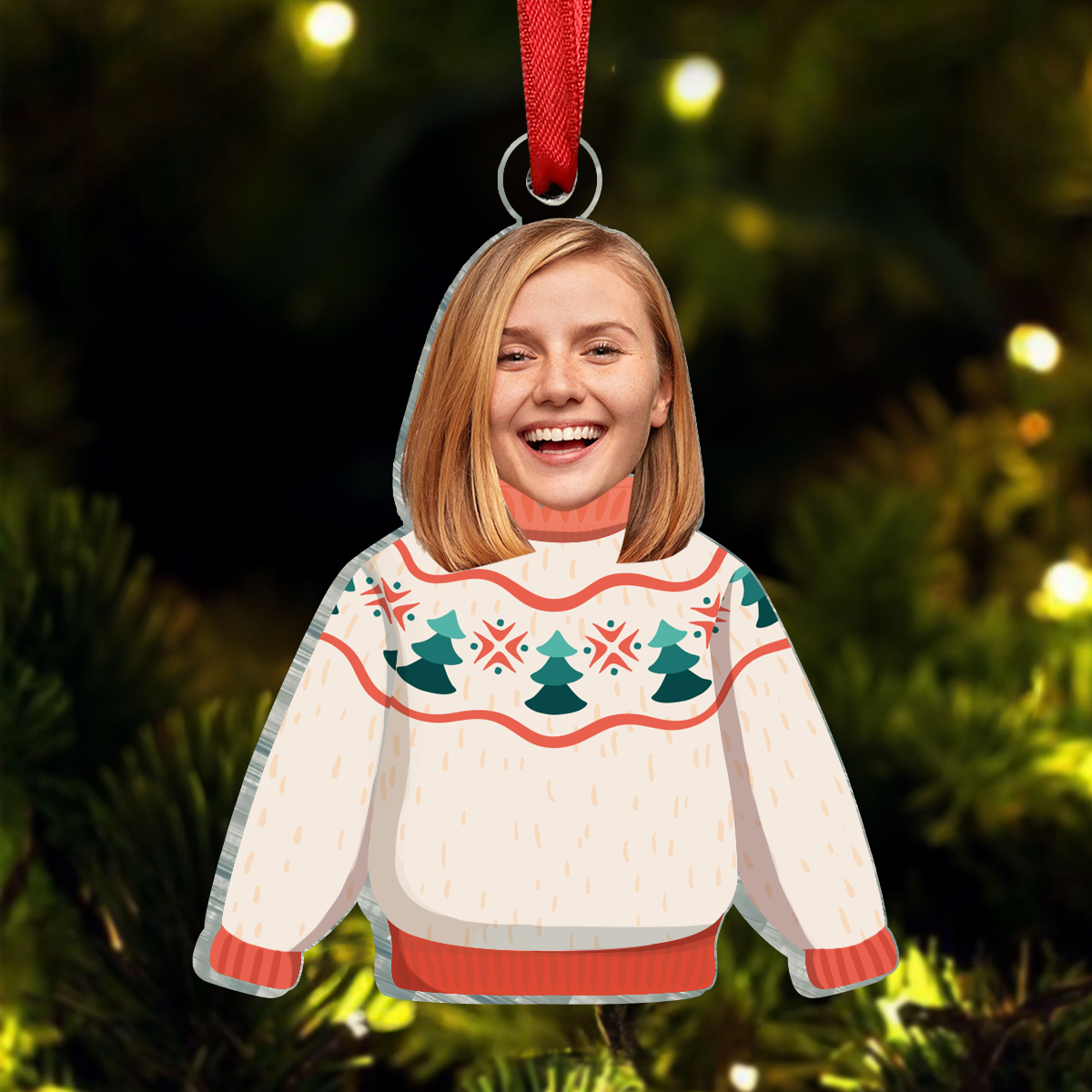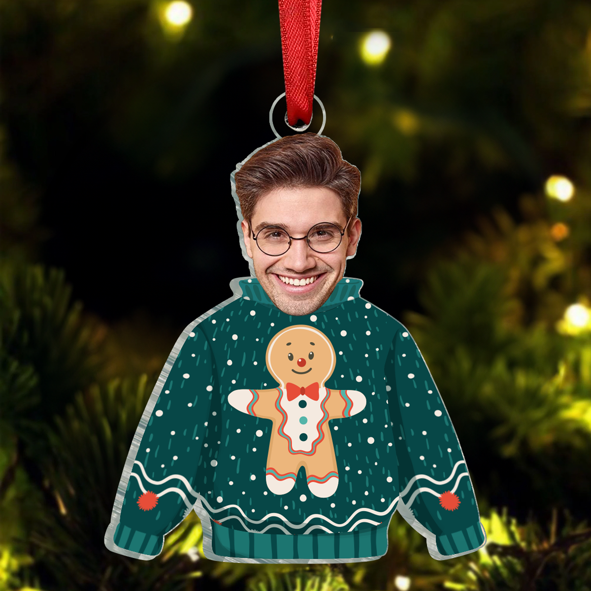 Custom Photo Funny Family Faces Hanging Christmas Sweater - Personalized Cutout Acrylic Ornament