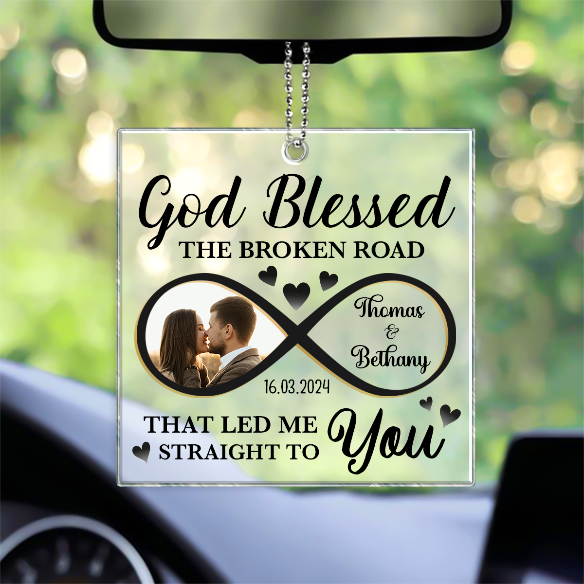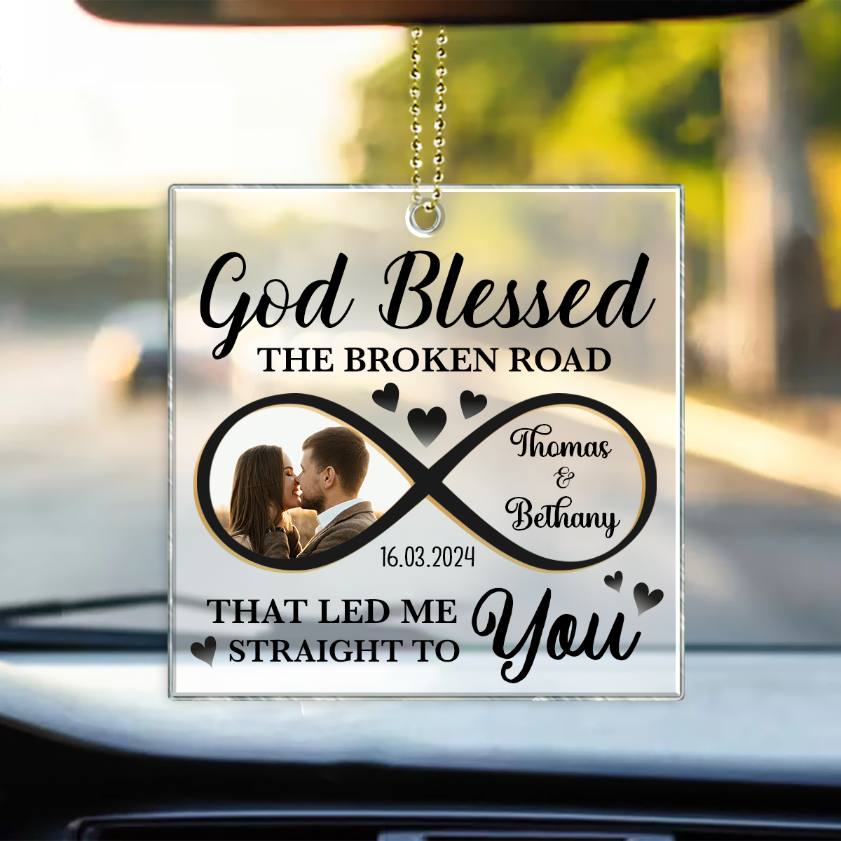 Custom Photo God Blessed The Broken Road Couples - Personalized Acrylic Car Hanger