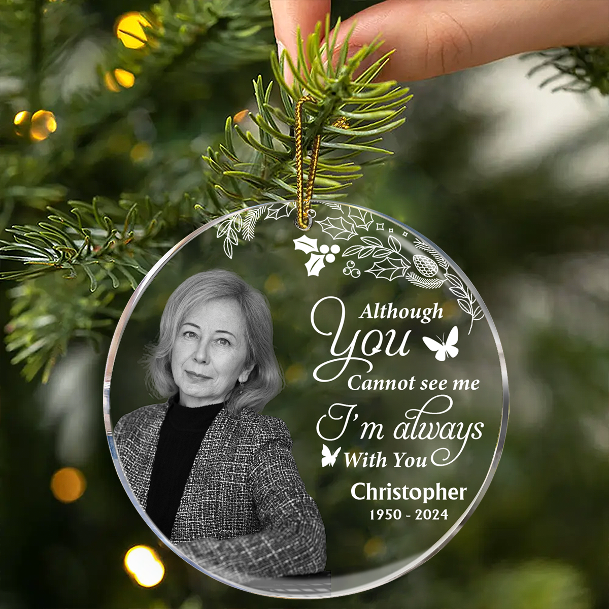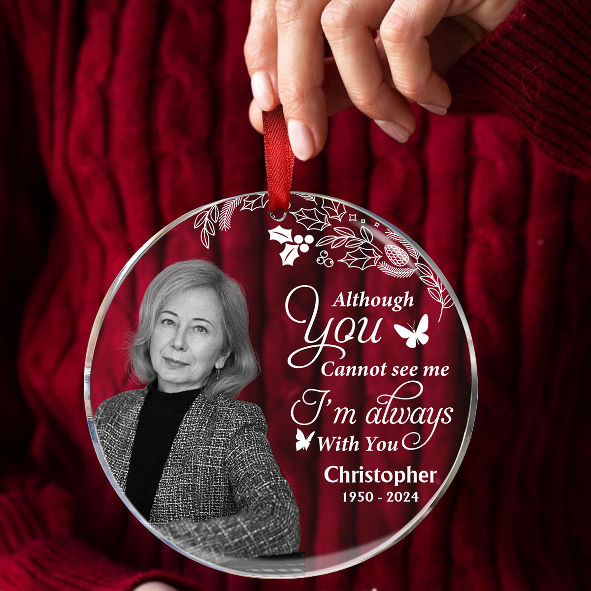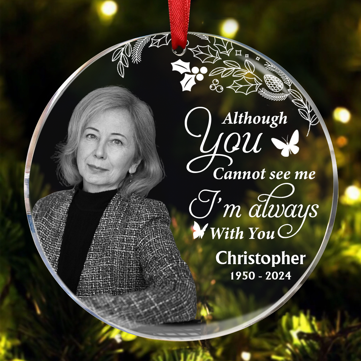 Custom Photo Grayscale Memorial Although You Cannot See Me - Personalized Circle Ornament