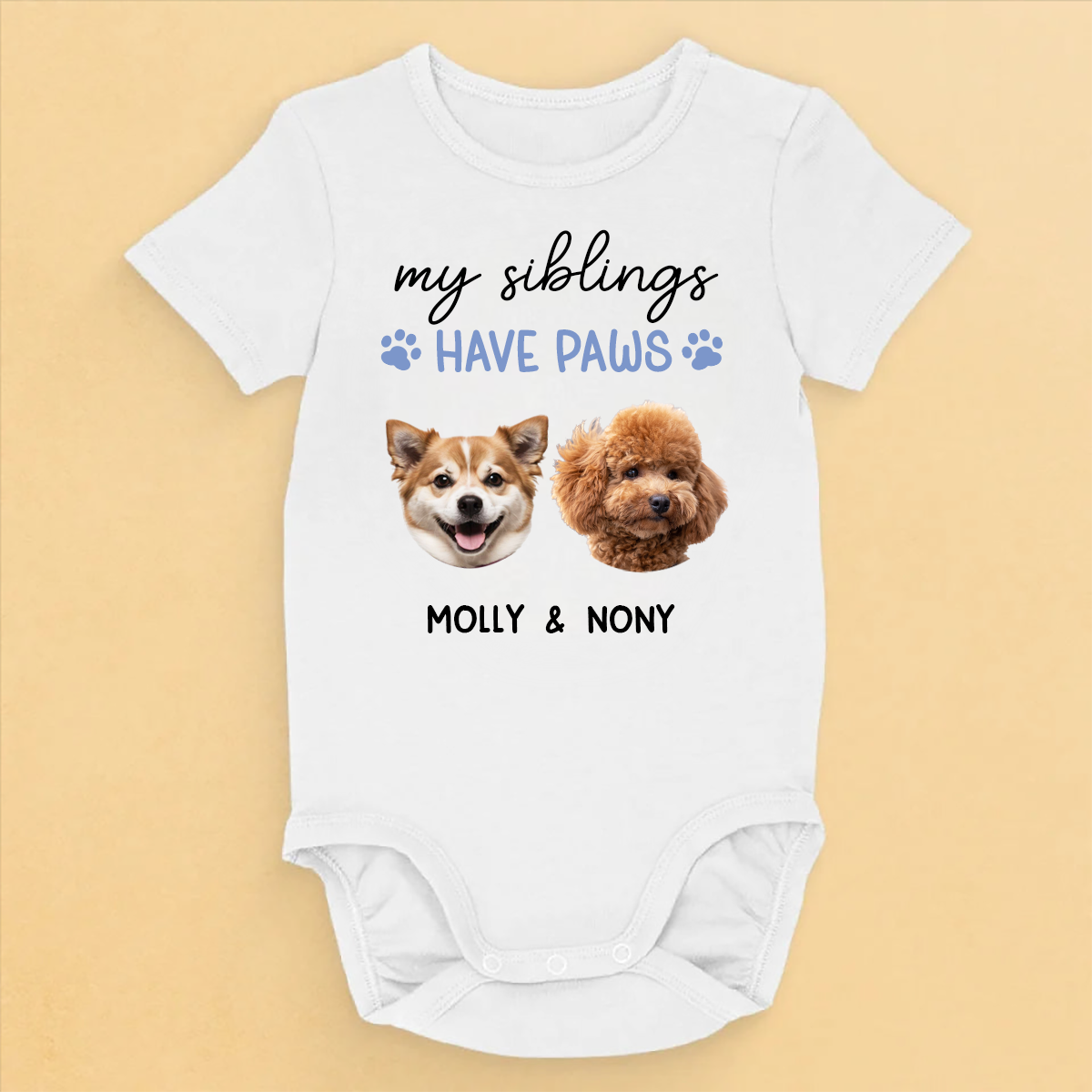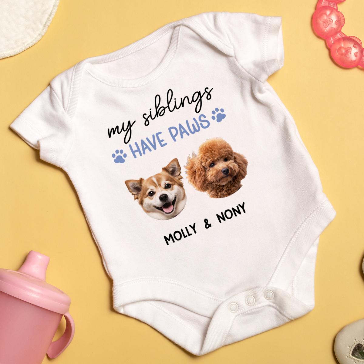Custom Photo Growing Up With Paws And Little Laughs - Dog & Cat Personalized Custom Baby Onesie - Baby Shower Gift, Gift For Pet Owners, Pet Lovers