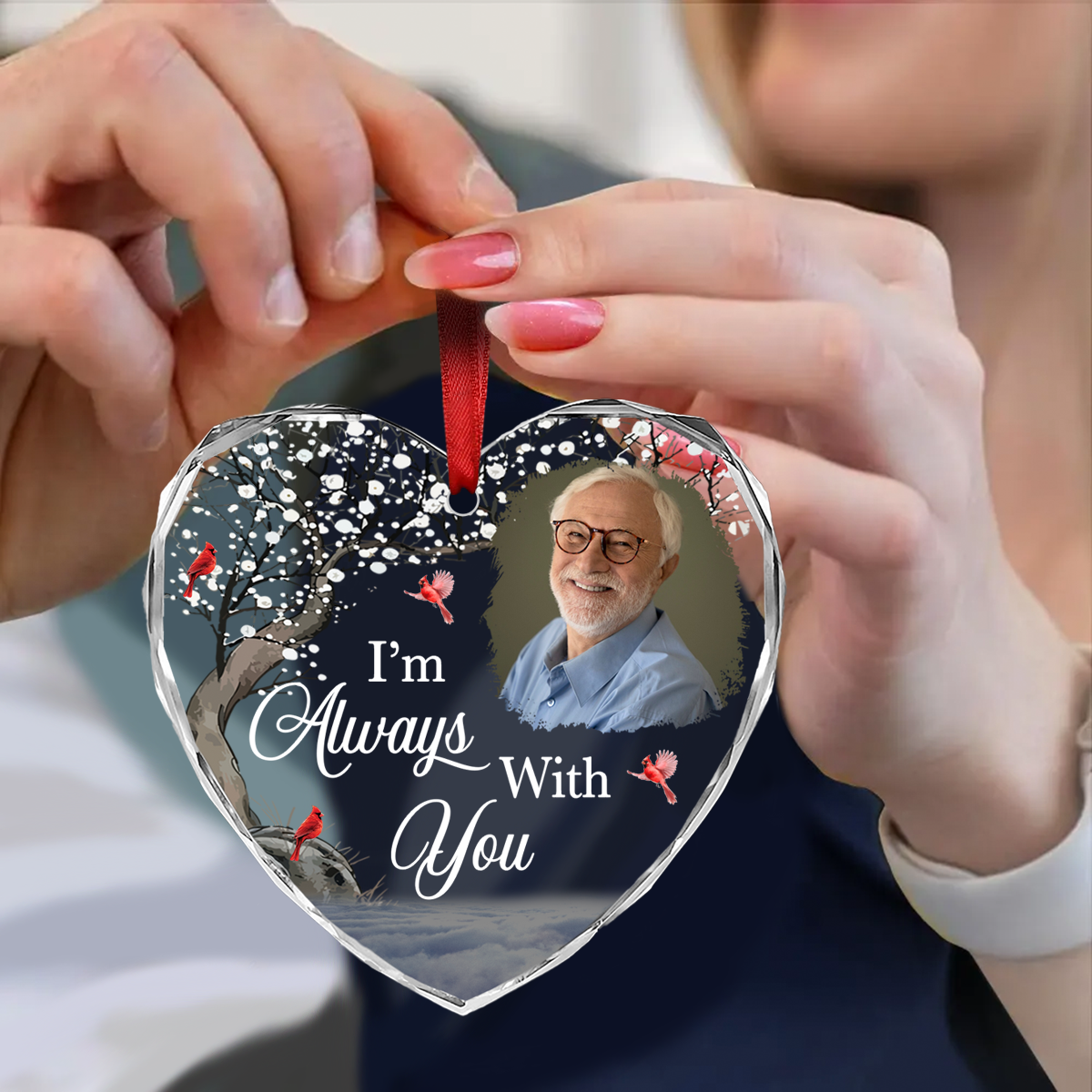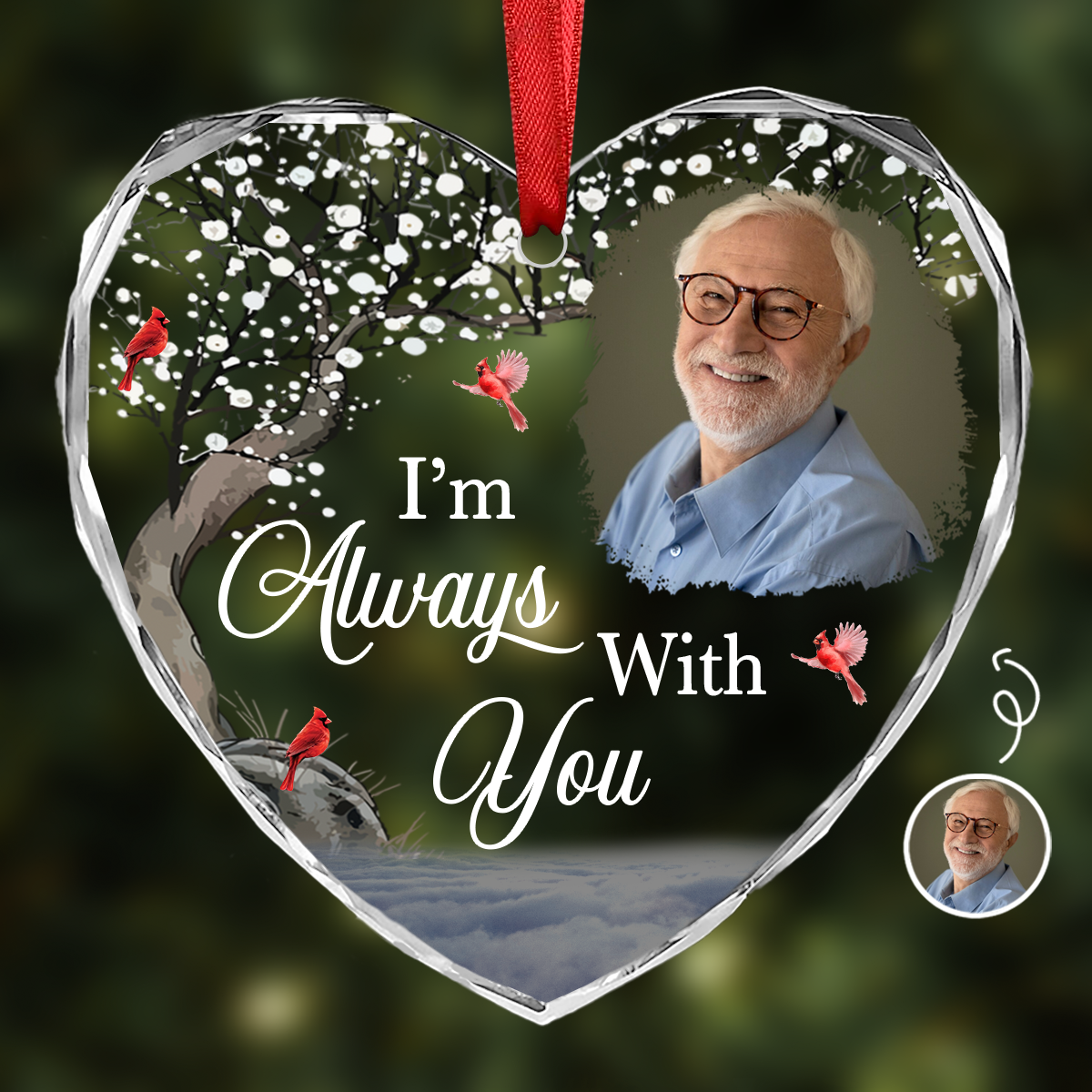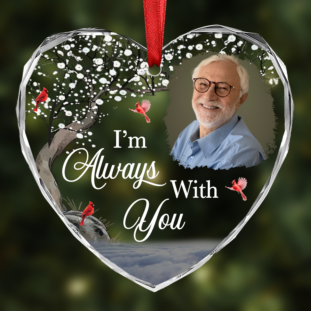 Custom Photo I'm Always With You Memorial - Personalized Heart Shaped Acrylic Ornament