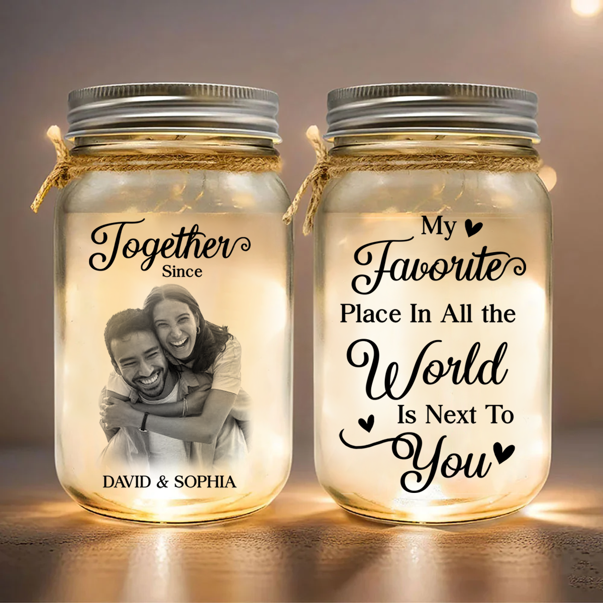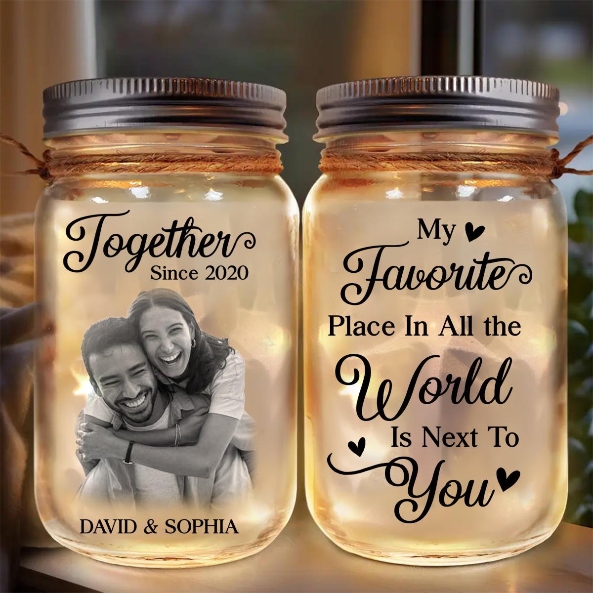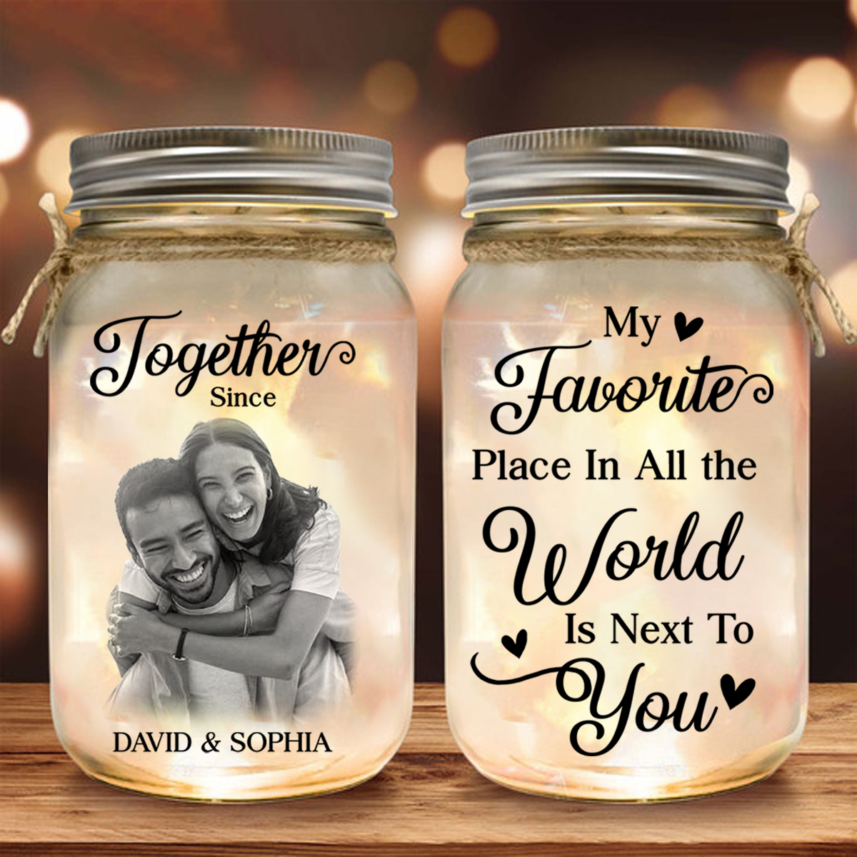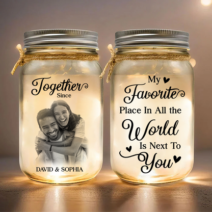 Custom Photo Our Love Is The Real Masterpiece Here - Couple Personalized Custom Mason Jar Light - Gift For Husband Wife, Anniversary