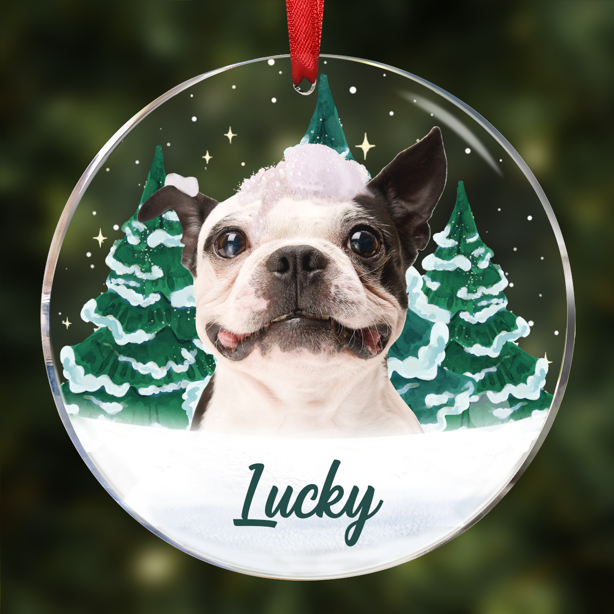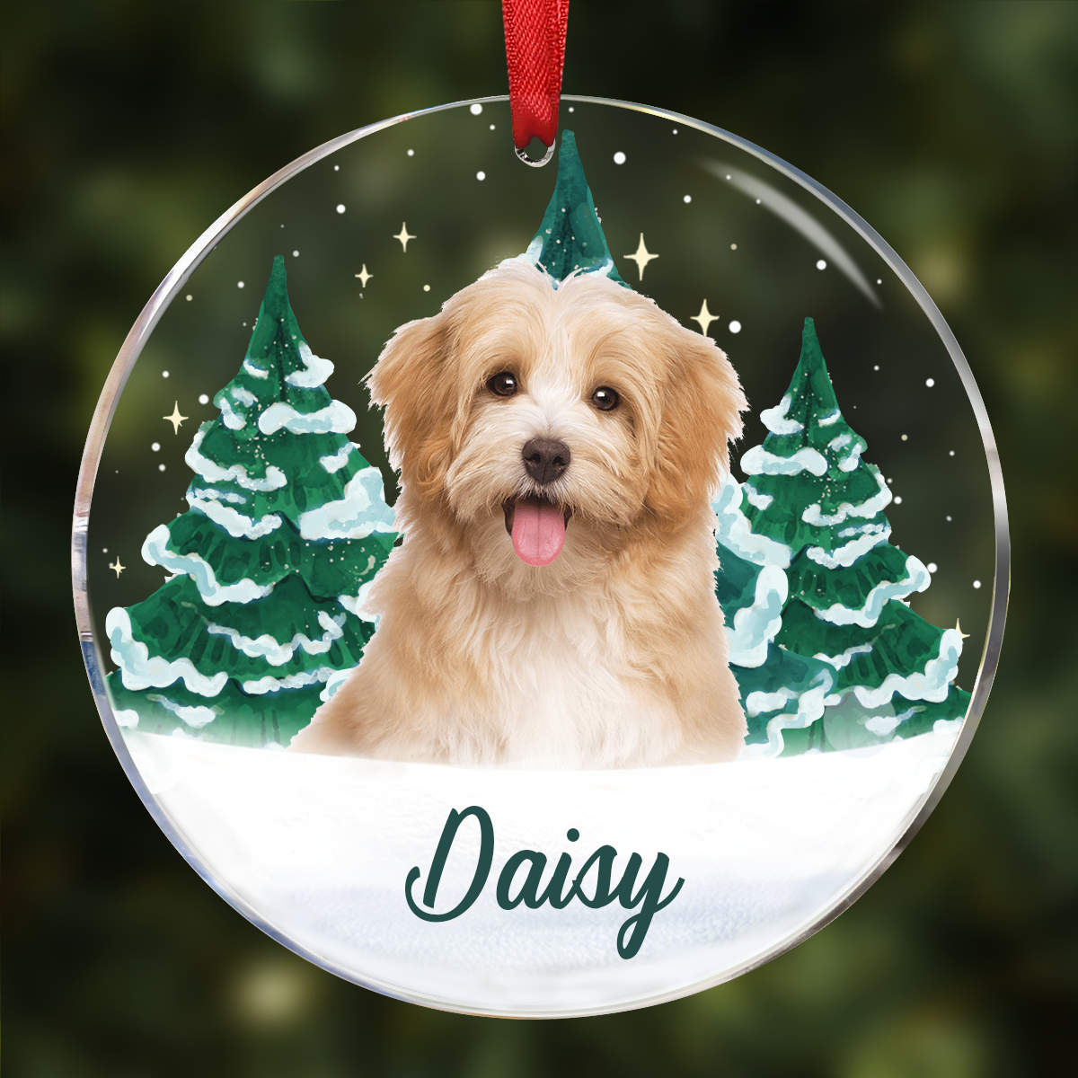 Custom Photo Pet Face Christmas Trees - Personalized Circle Acrylic Ornament