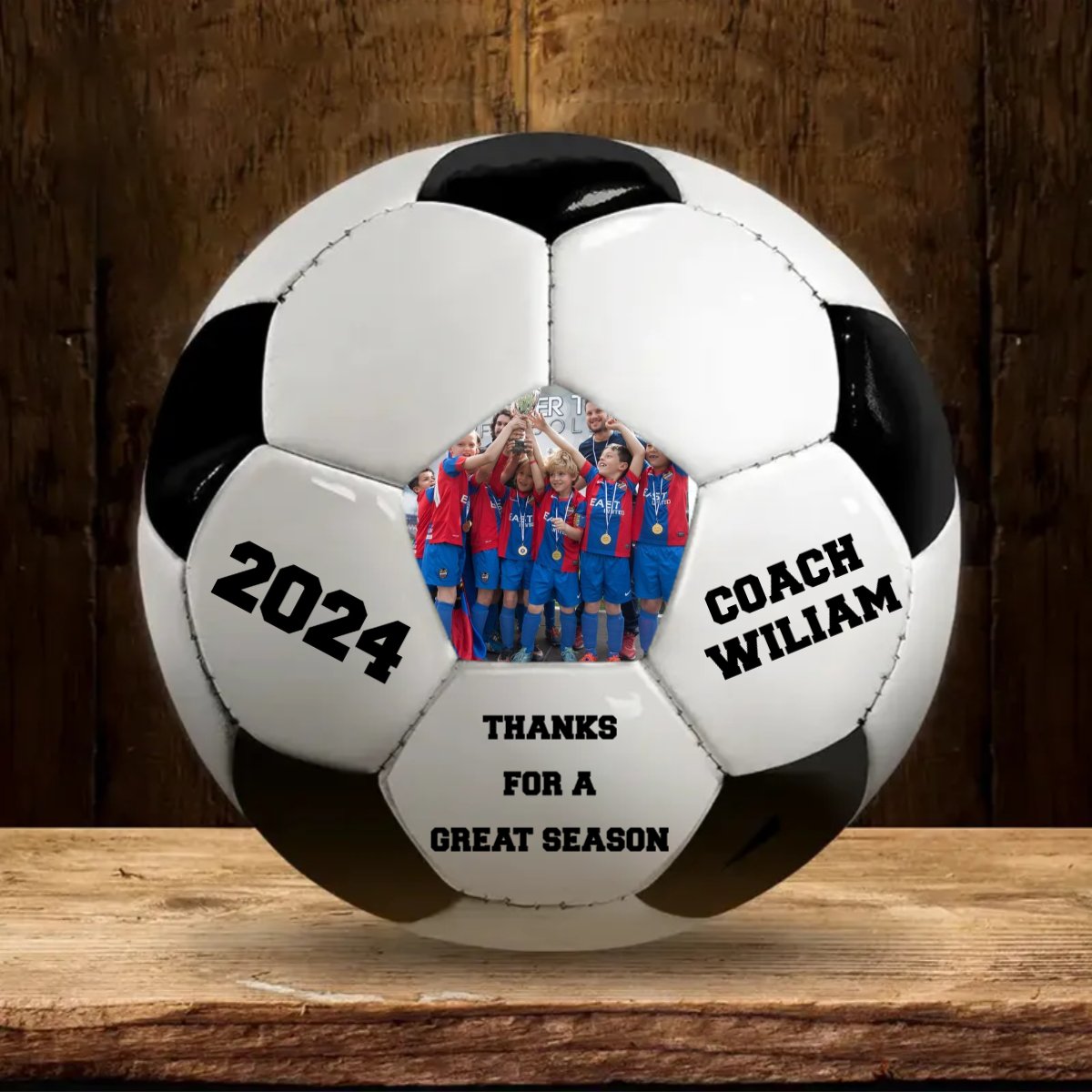 Custom Photo Thanks For A Great Season - Personalized Soccer Ball