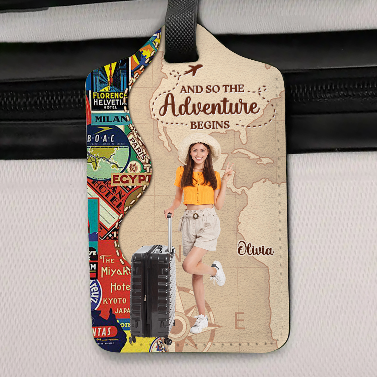 Custom Photo Travel Lover And So The Adventure Begins - Personalized Luggage Tag