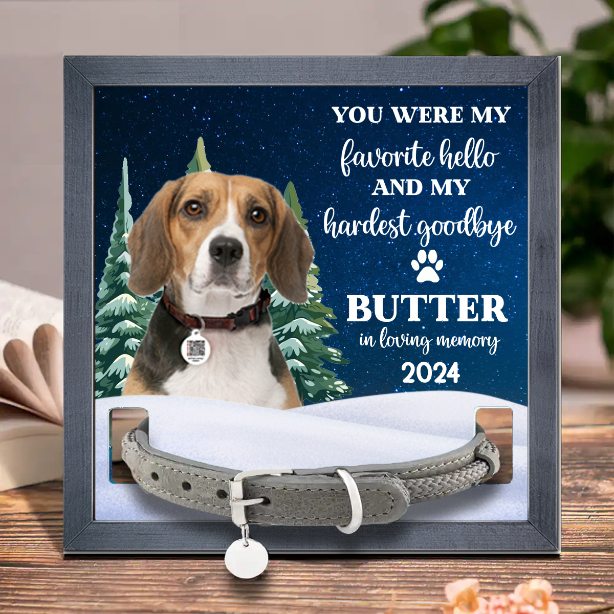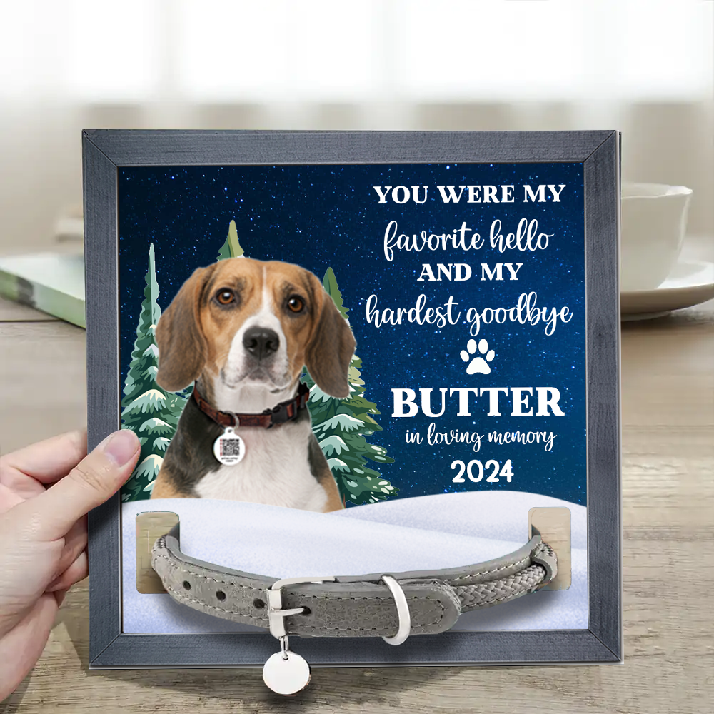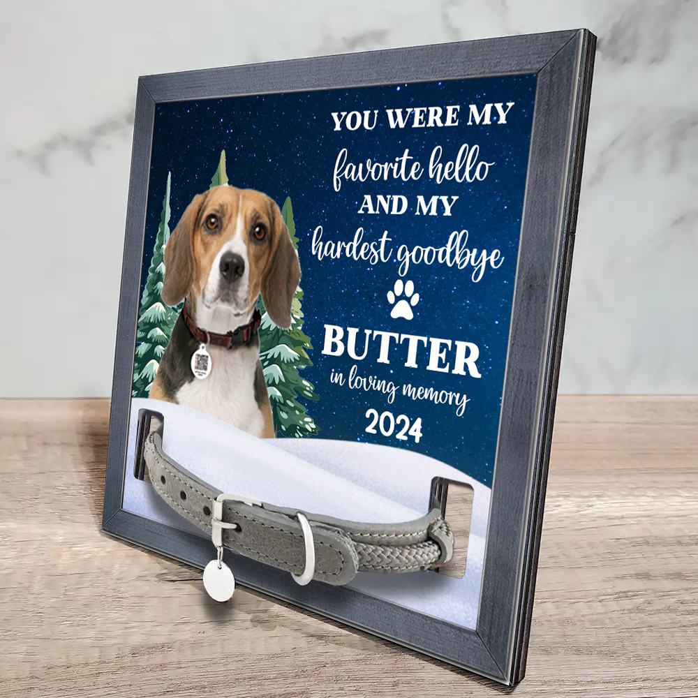 Custom Photo You Are My Favorite Hello And Hardest Goodbye Pet Face Memorial - Personalized Pet Loss Sign, Collar Frame