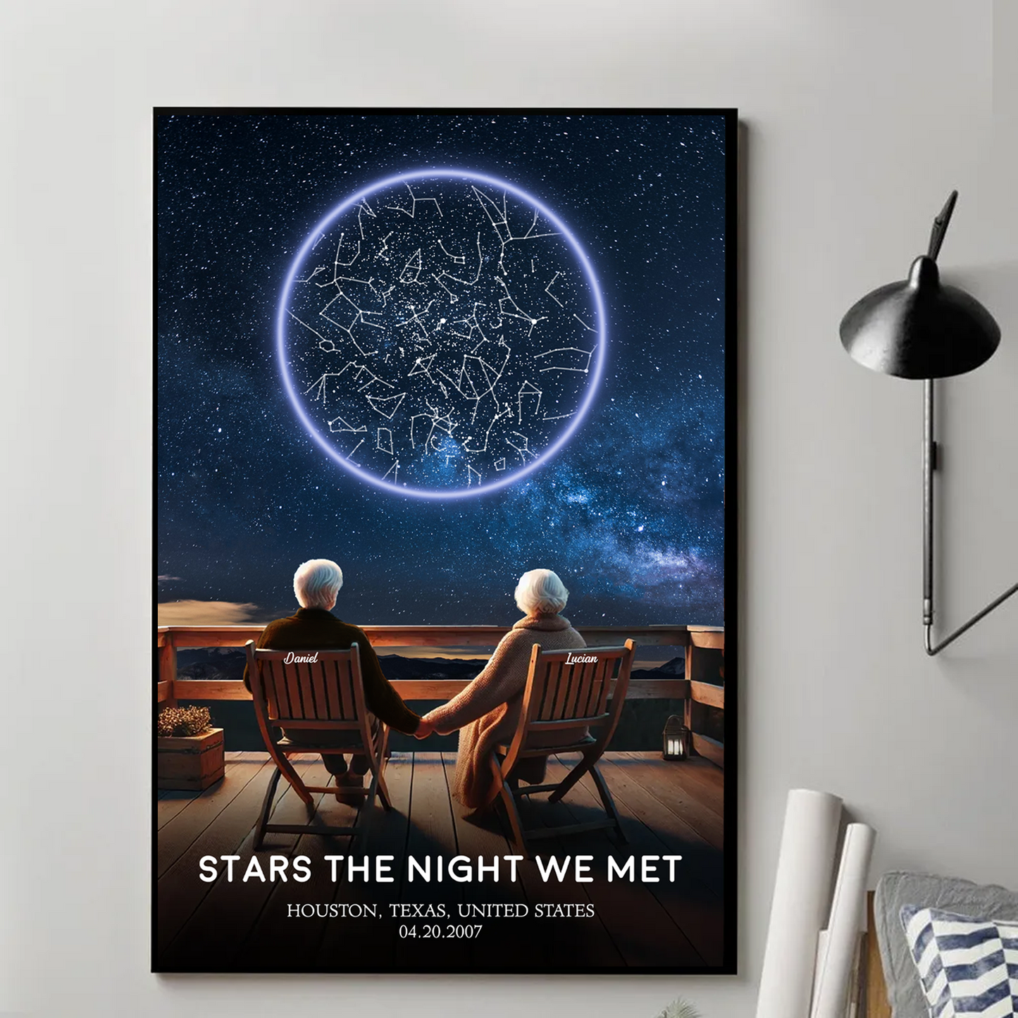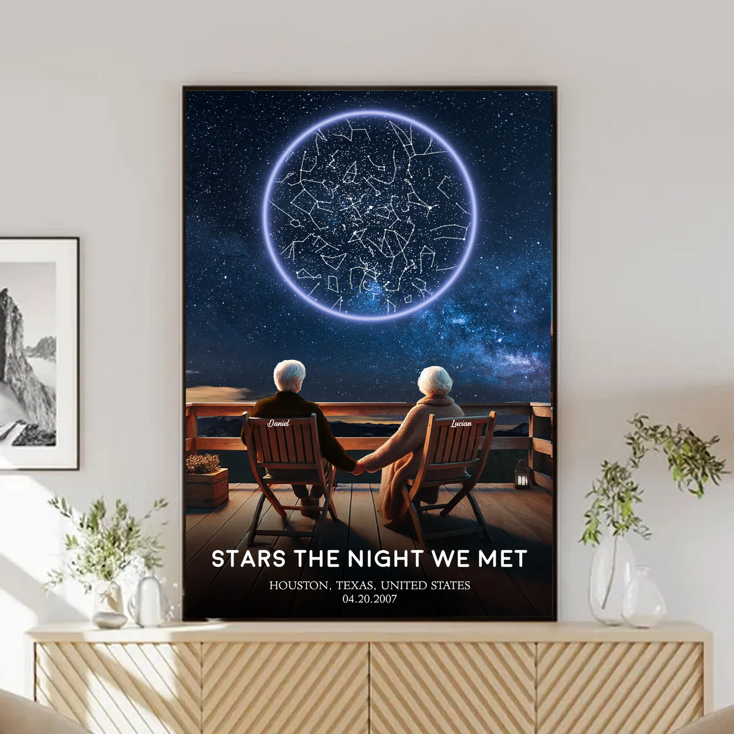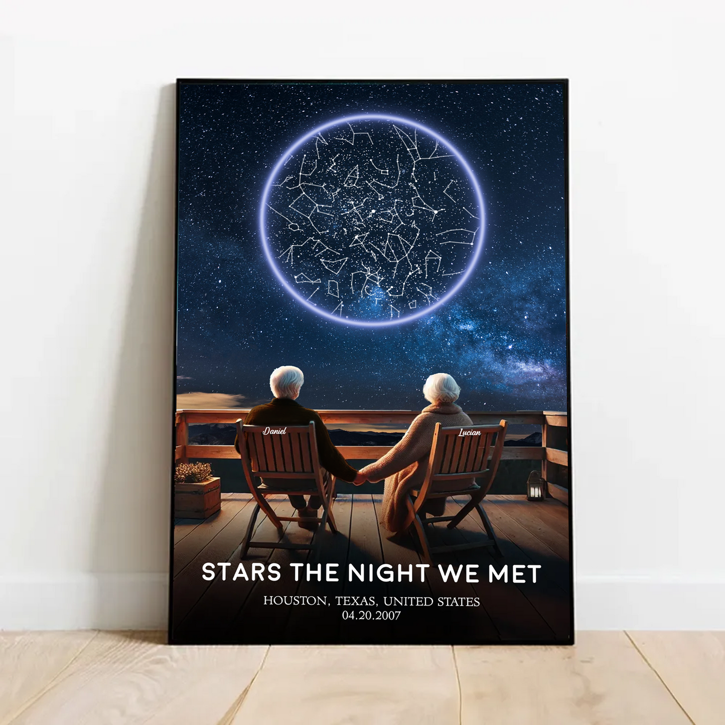 Custom Star Map Personalized Poster, Romantic Old Couple Sitting on the Beach