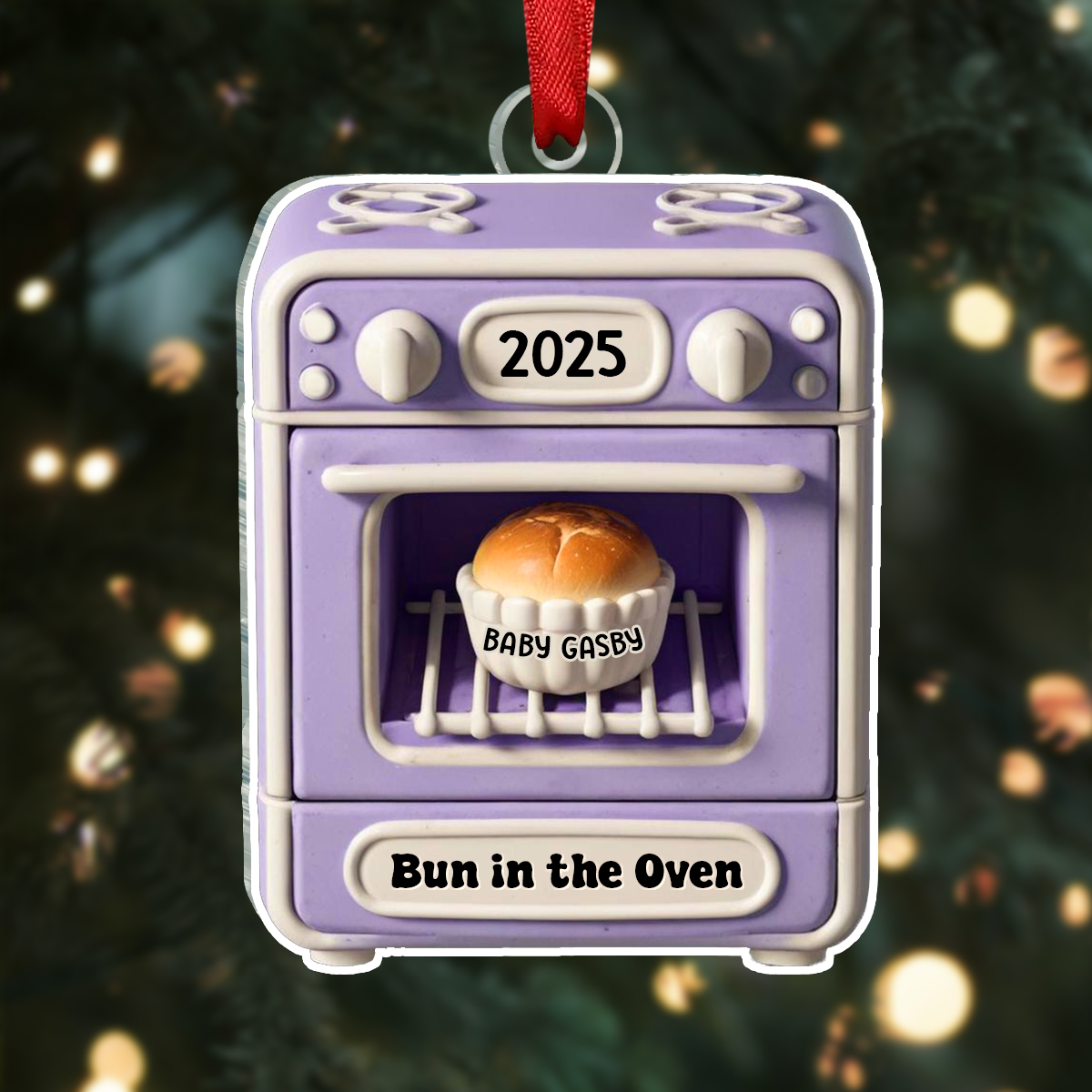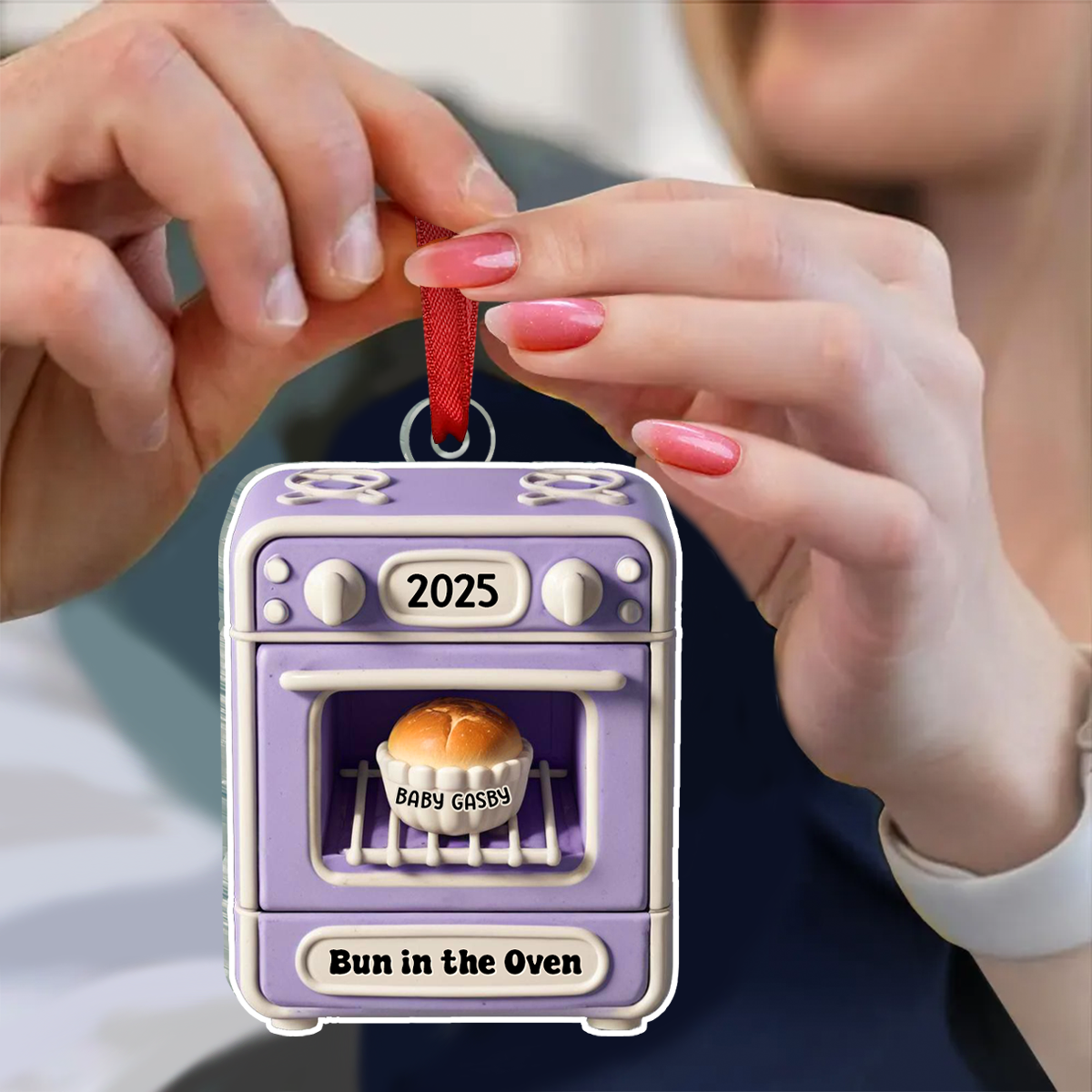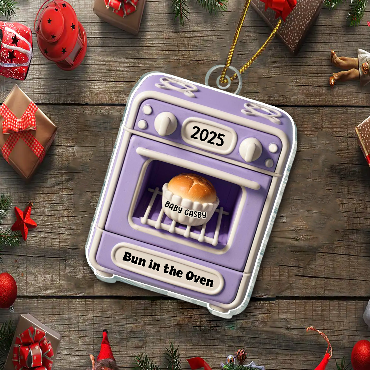 Cute Bun In The Oven Pregnancy Announcement Expecting Baby Arriving Christmas 3D Effect Personalized Acrylic Ornament