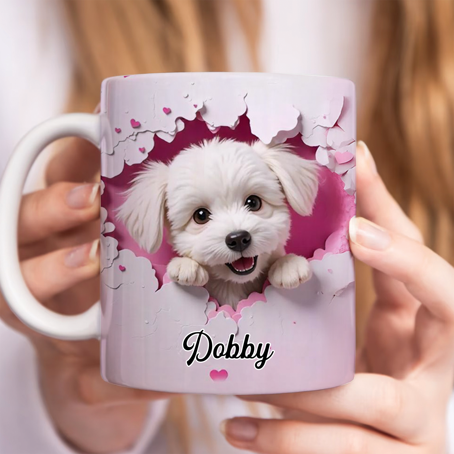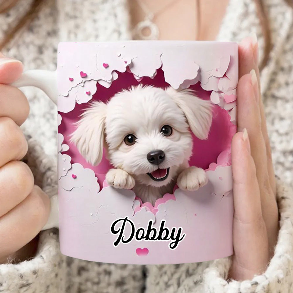 Cute Dog 3D Effect Personalized Mug, Mother's Day, Birthday Gift for Dog Moms