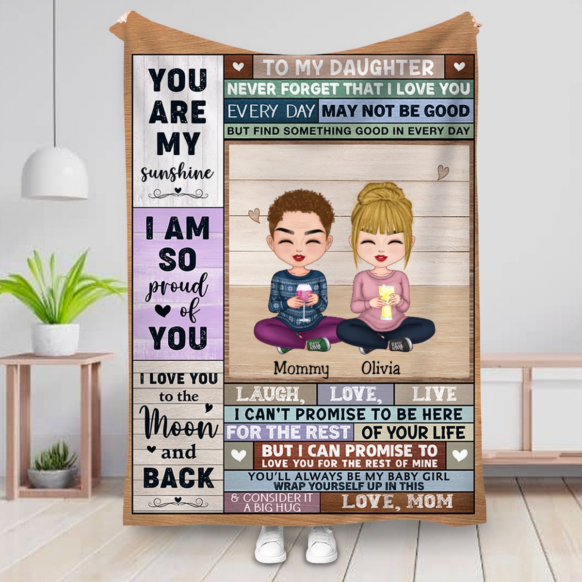 Daughter - I Love You To The Moon And Back - Personalized Blanket (Ver. 2)