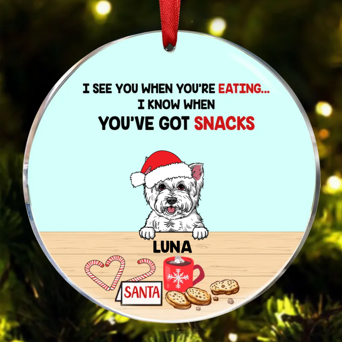 Dog Christmas See You Eating Snacks Personalized Dog Decorative Christmas Ornament