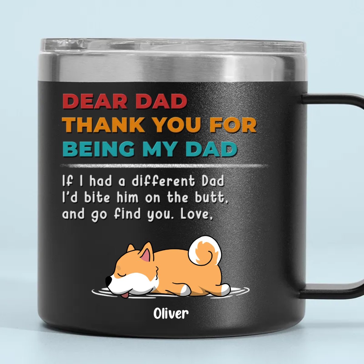 Dog Lovers - Dear Dad Thank You For Being My Dad - Personalized Stainless Steel Tumbler With Handle