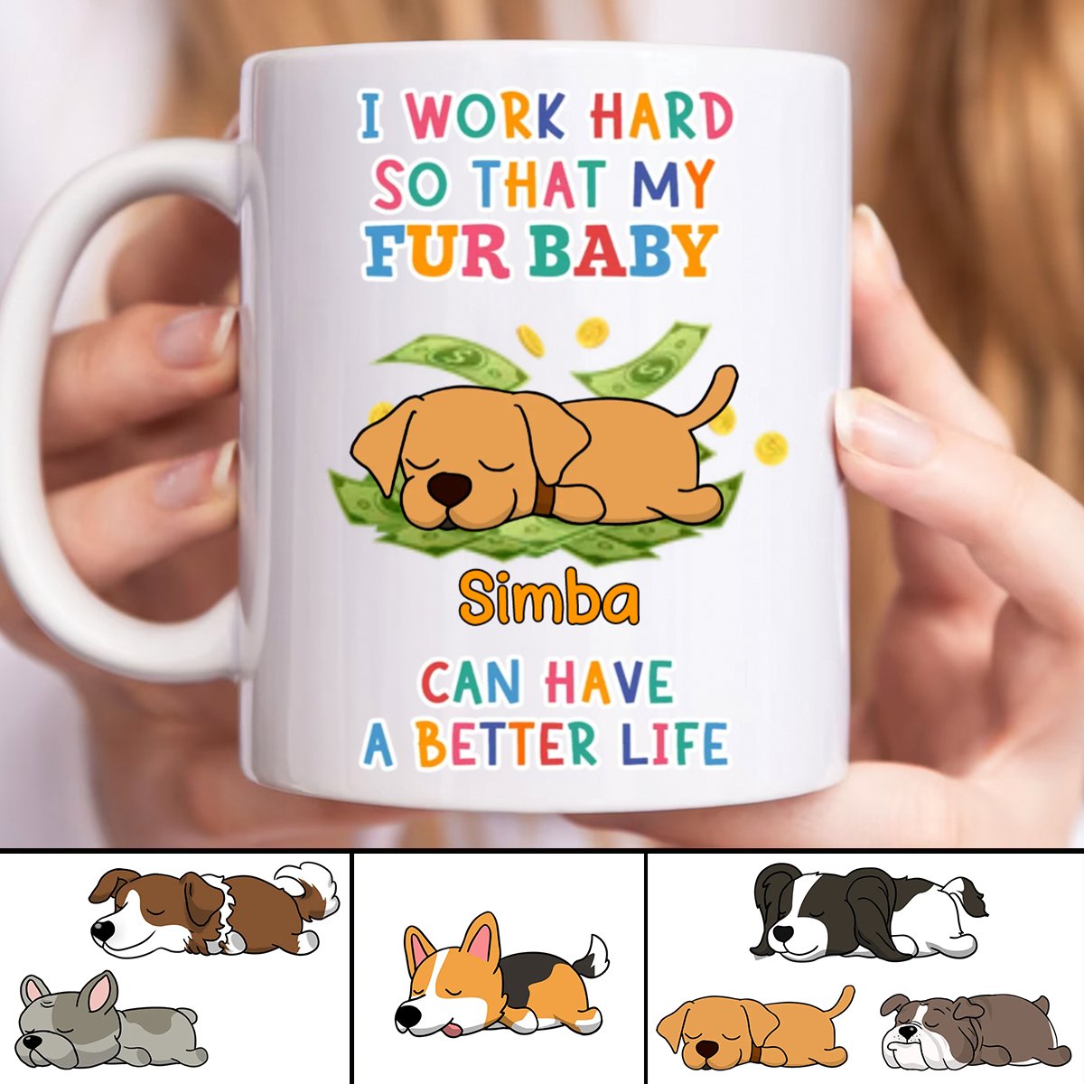 Dog Lovers - I Work Hard So That My Fur Baby - Personalized Mug