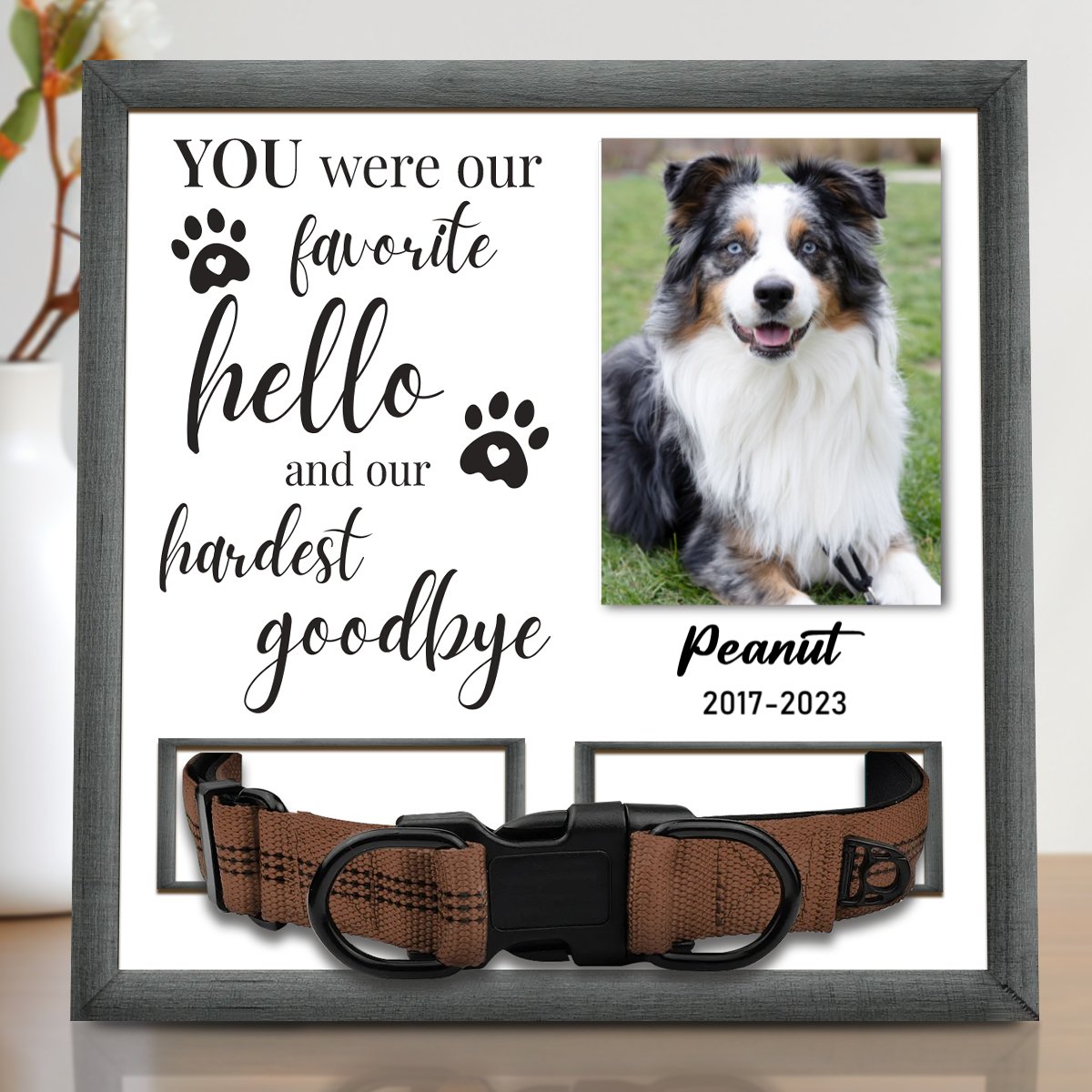 Dog Lovers - You Were Our Favorite Hello And Our Hardest Goodbye - Personalized Wooden Pet Collar Holder