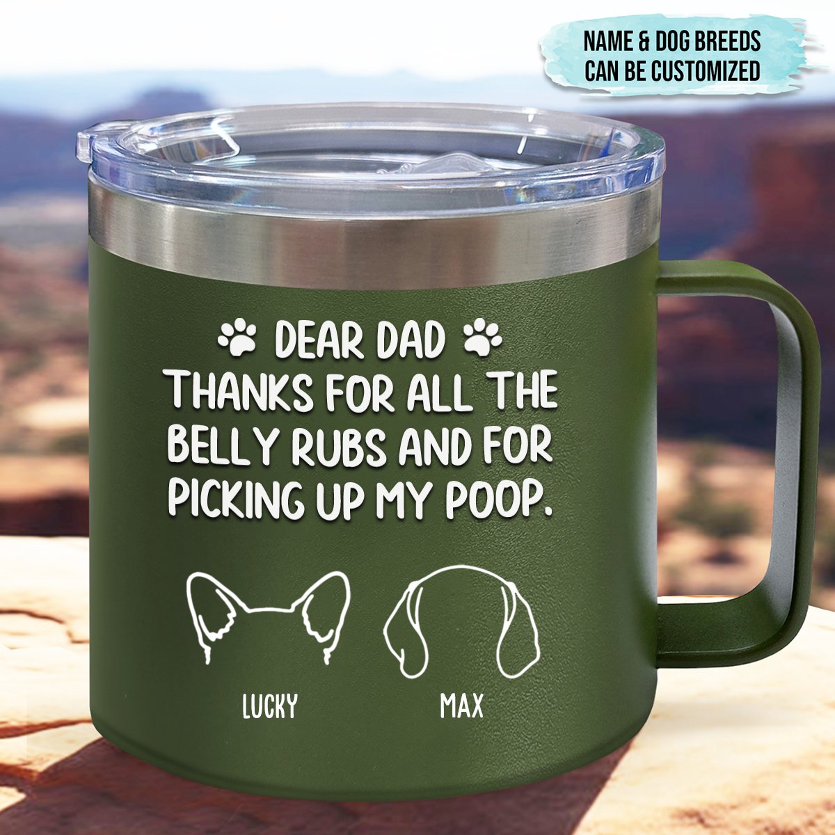 Dog Lovers - Thanks For All The Belly Rubs - Personalized Stainless Steel Tumbler With Handle (TB)
