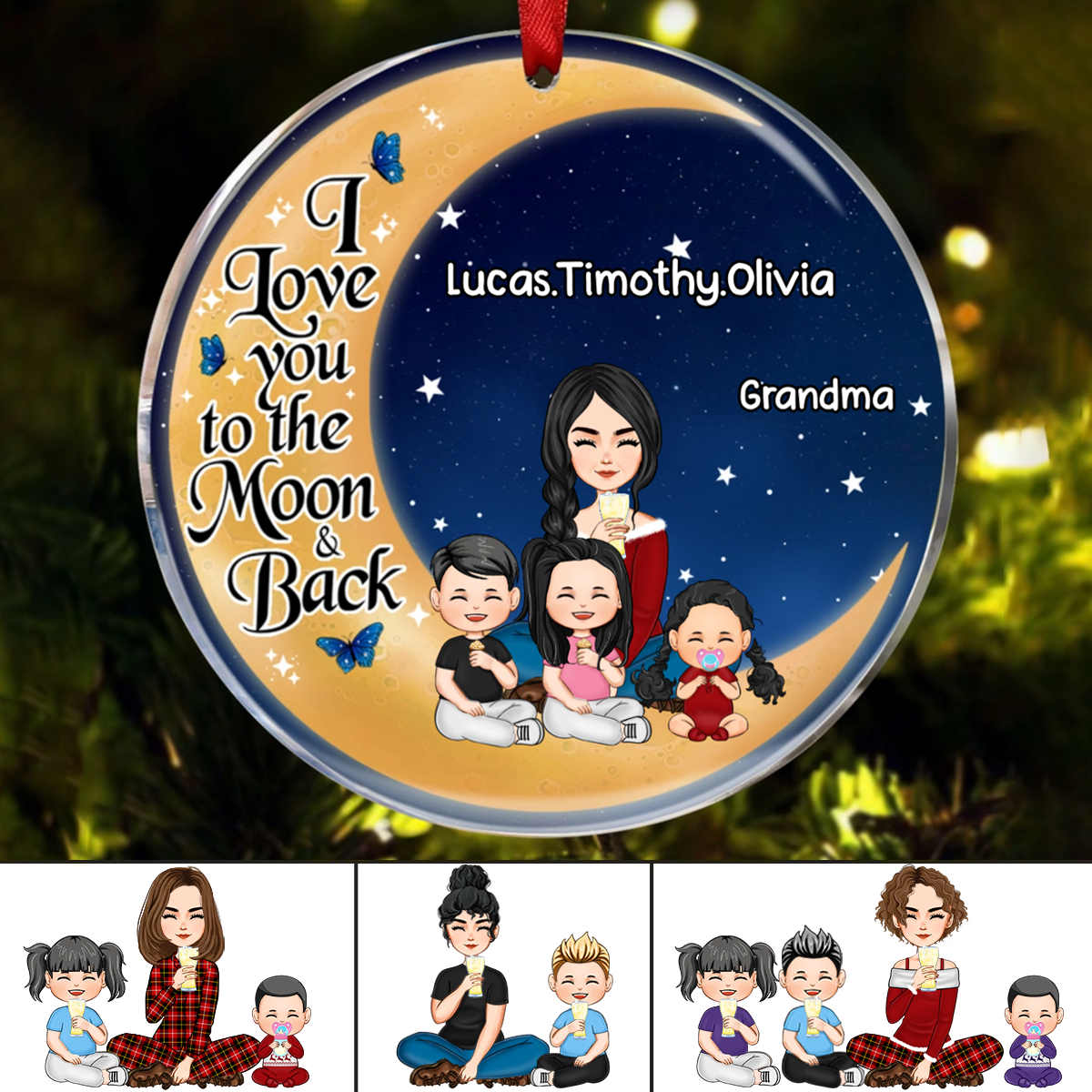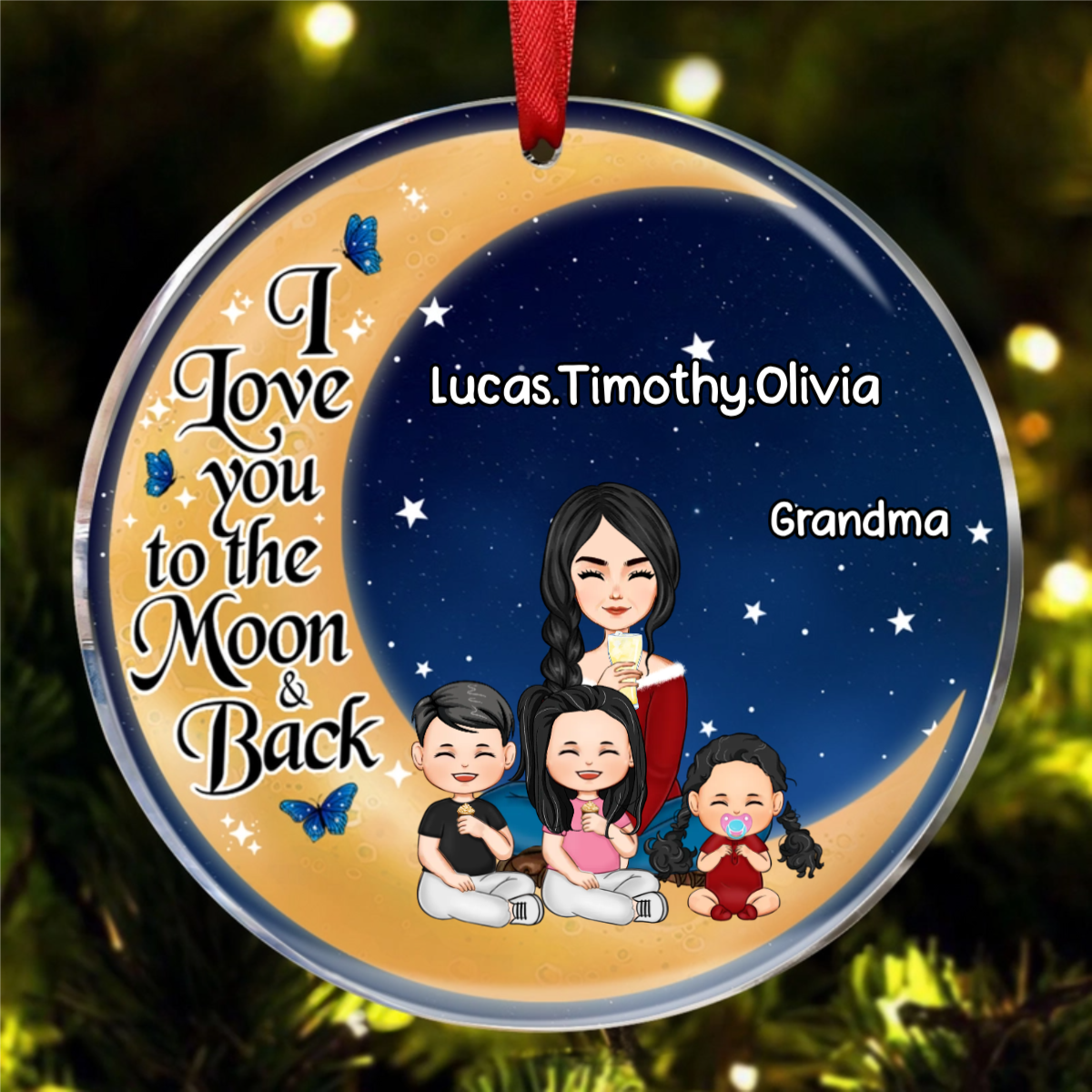 Doll Grandma Grandkids On Moon Personalized Circle Ornament