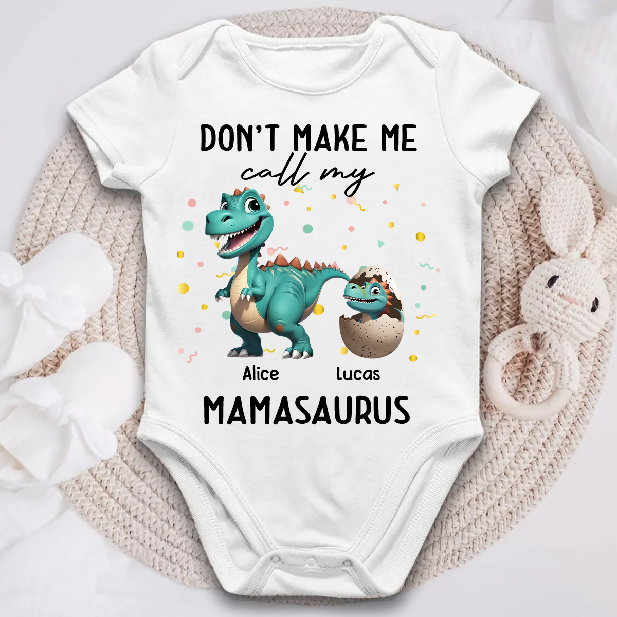 Don't Make Me Call My Mamasaurus Grandmasaurus Personalized Baby Onesie