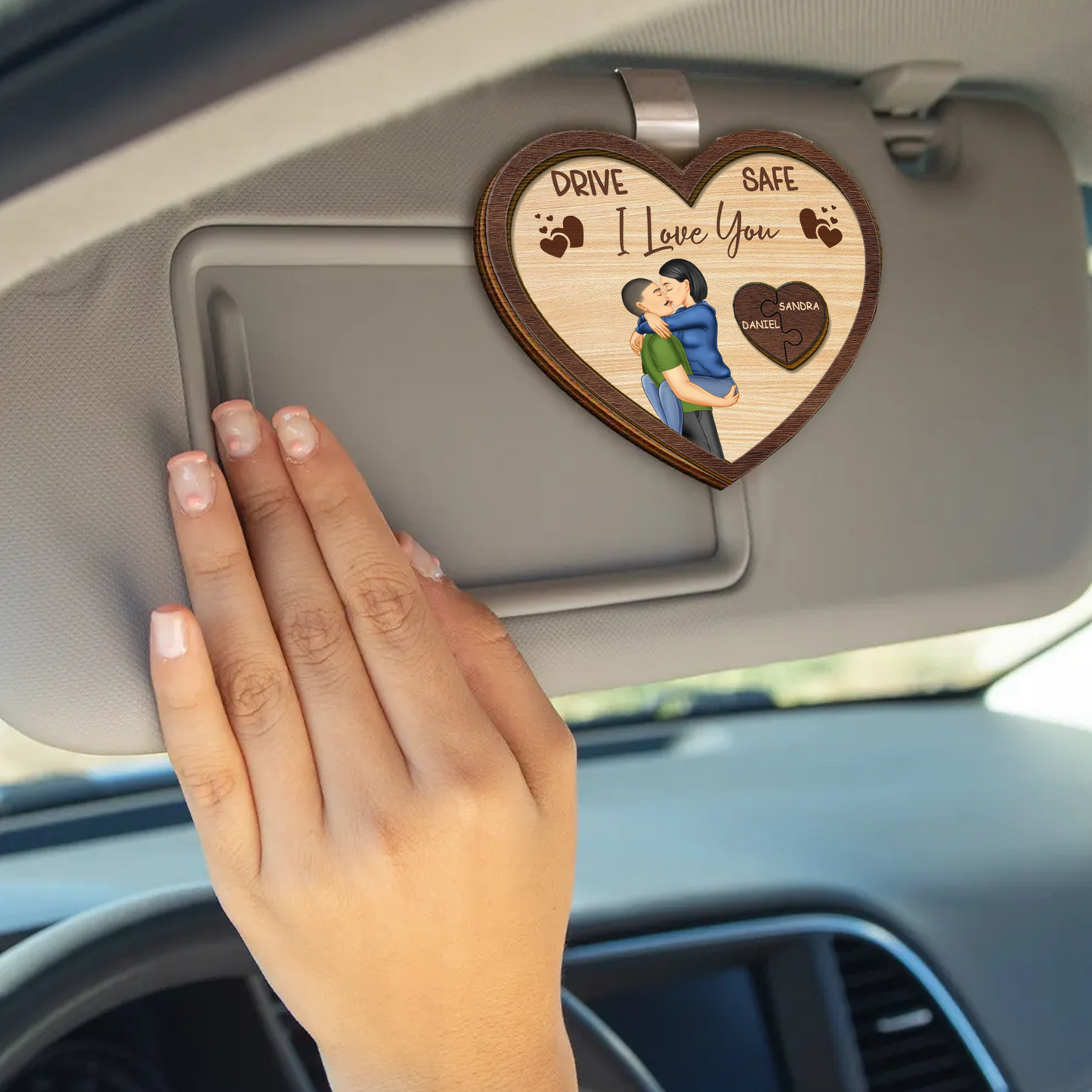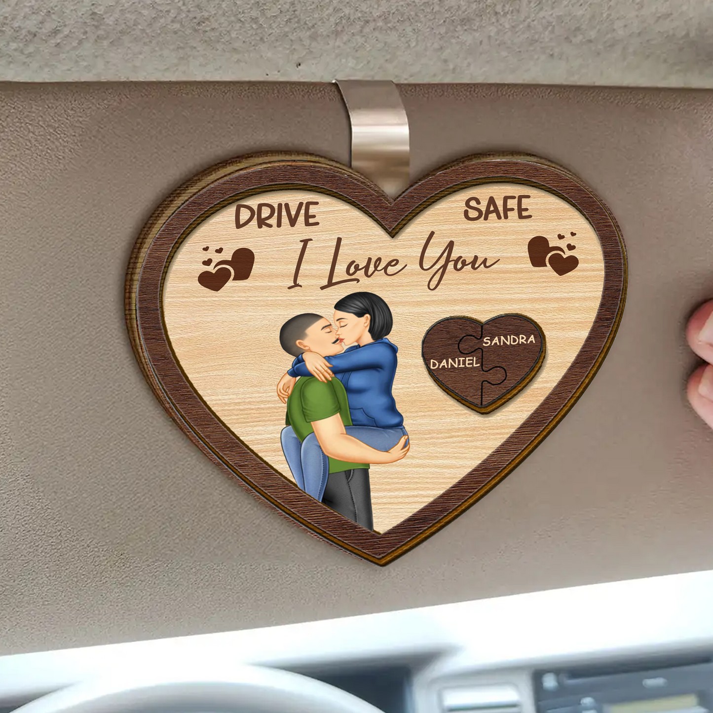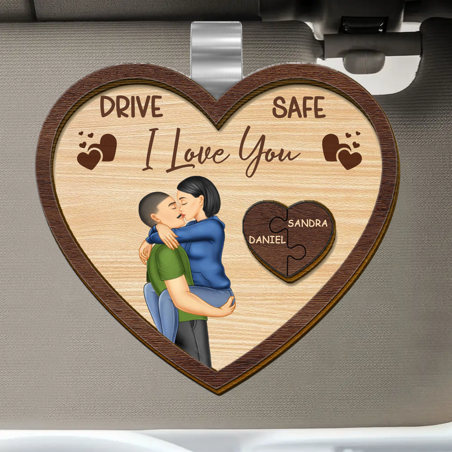 Drive Safe I Love You Kissing Couples Heart - Personalized Custom Shaped Car Visor Clip