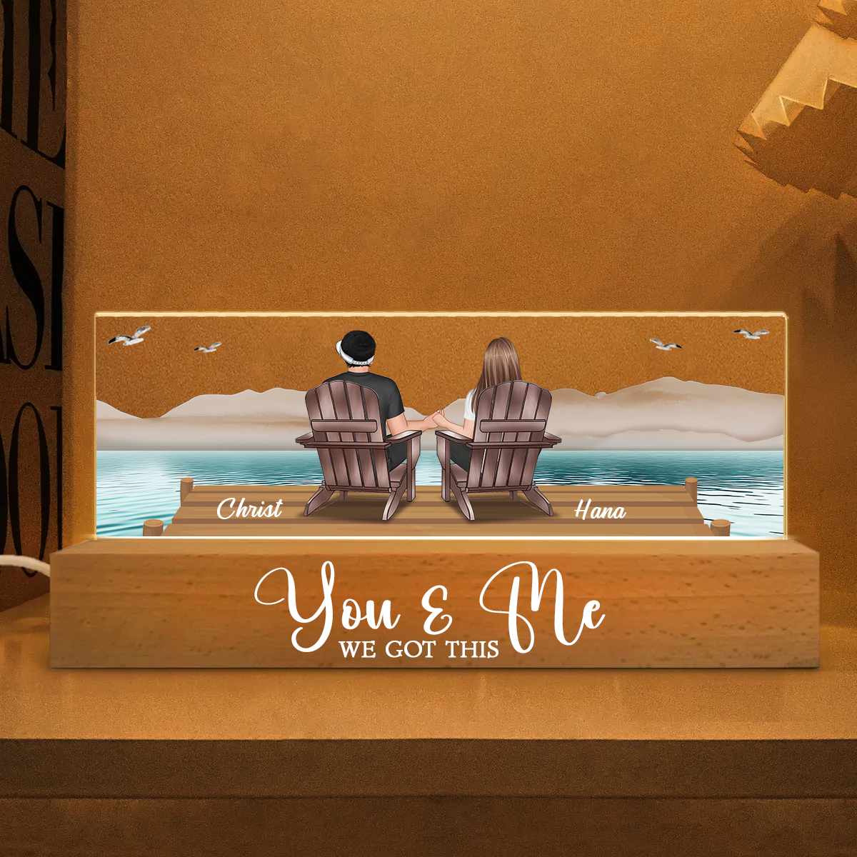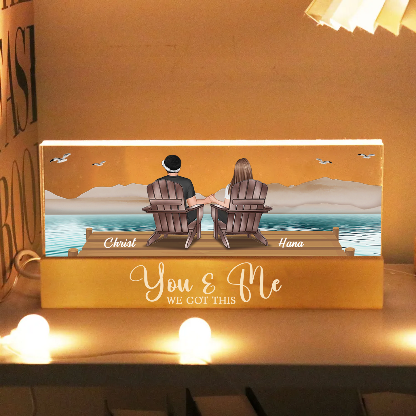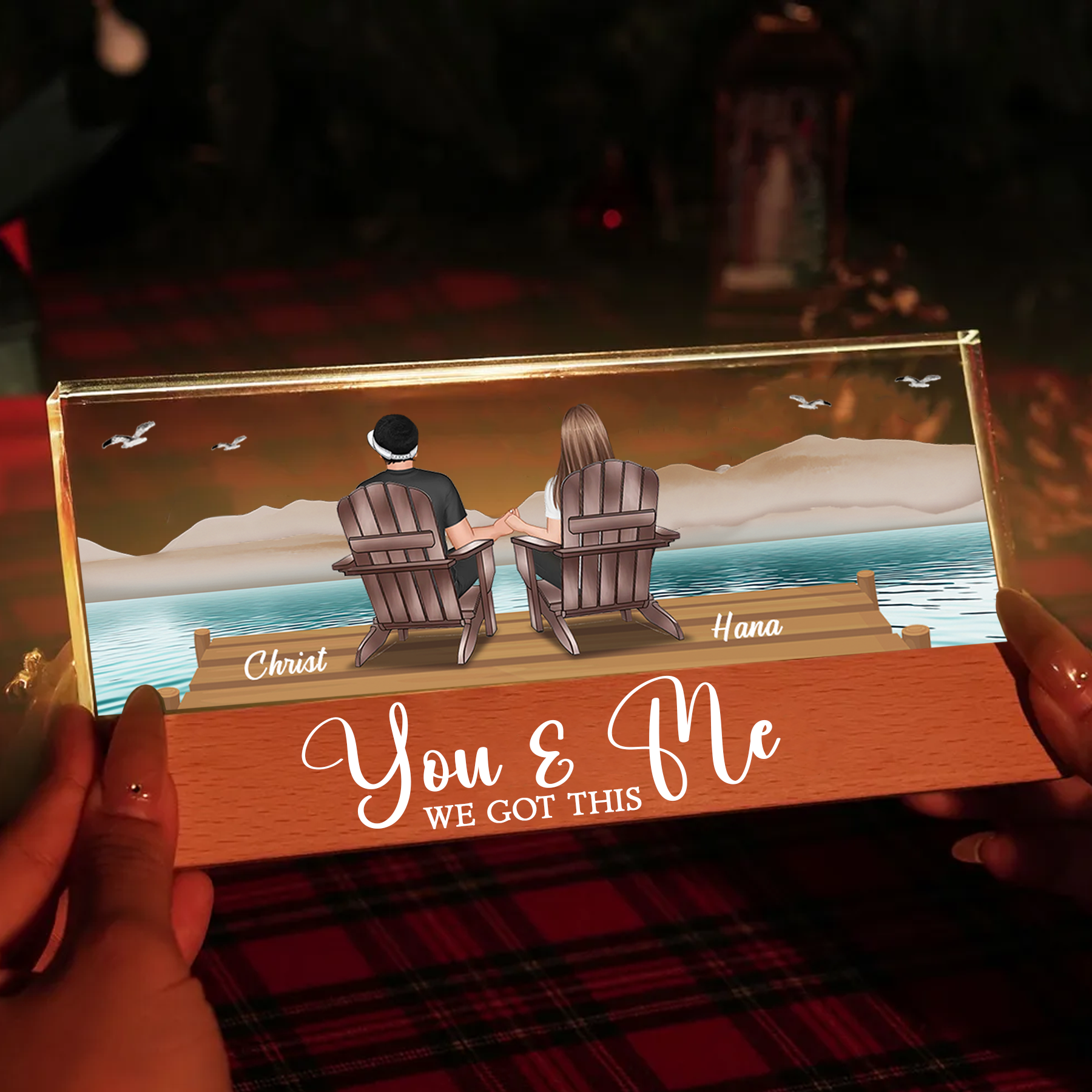 Eternal Sunset Beach Couple Personalized Acrylic LED Night Light, Heartfelt 2025 Gift, Anniversary Gift For Girlfriend, For Wife