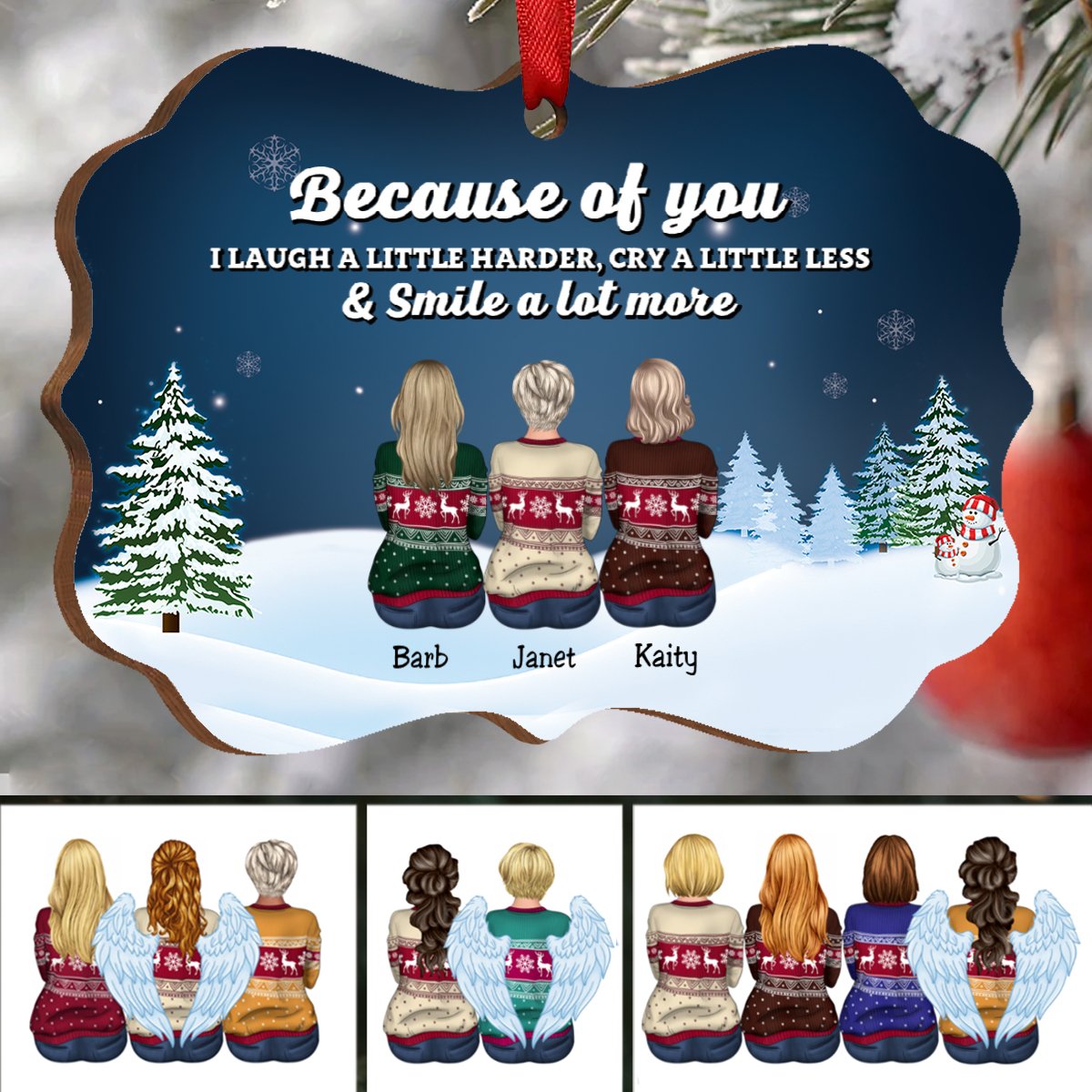 Family - Because Of You I Laugh A Little Harder, Cry A Little Less & Smile A Lot More - Personalized Christmas Ornament - NN47
