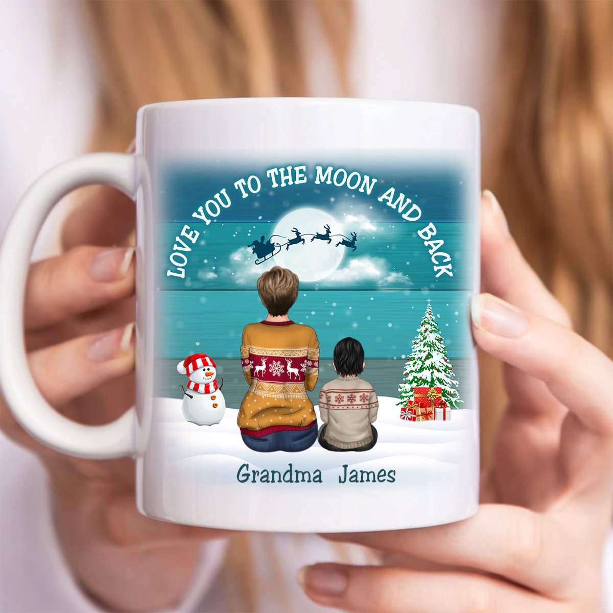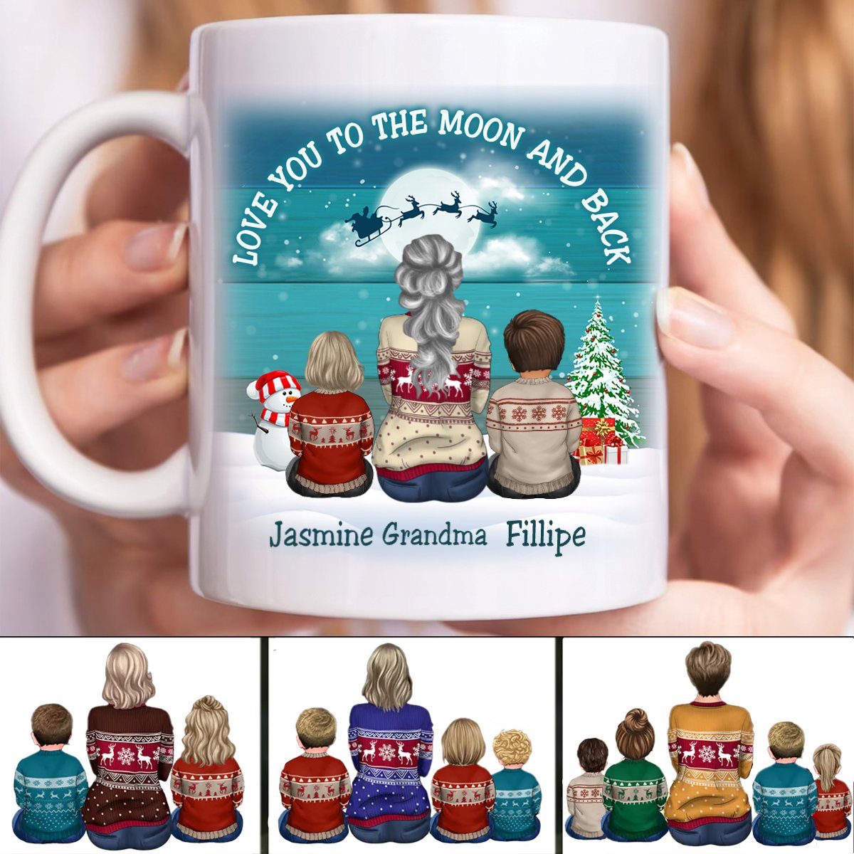 Family - Blue Palette Moon Grandma & Grandkids Back View - Personalized Mug (LH)
