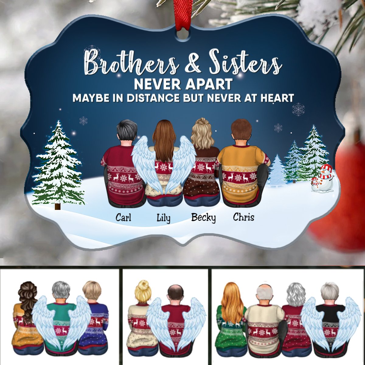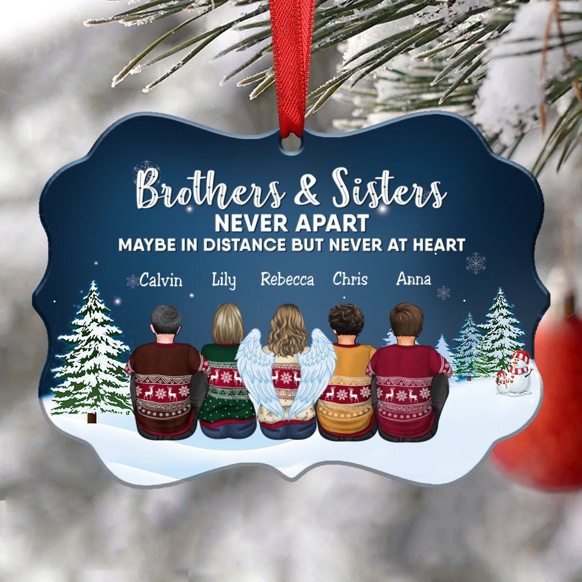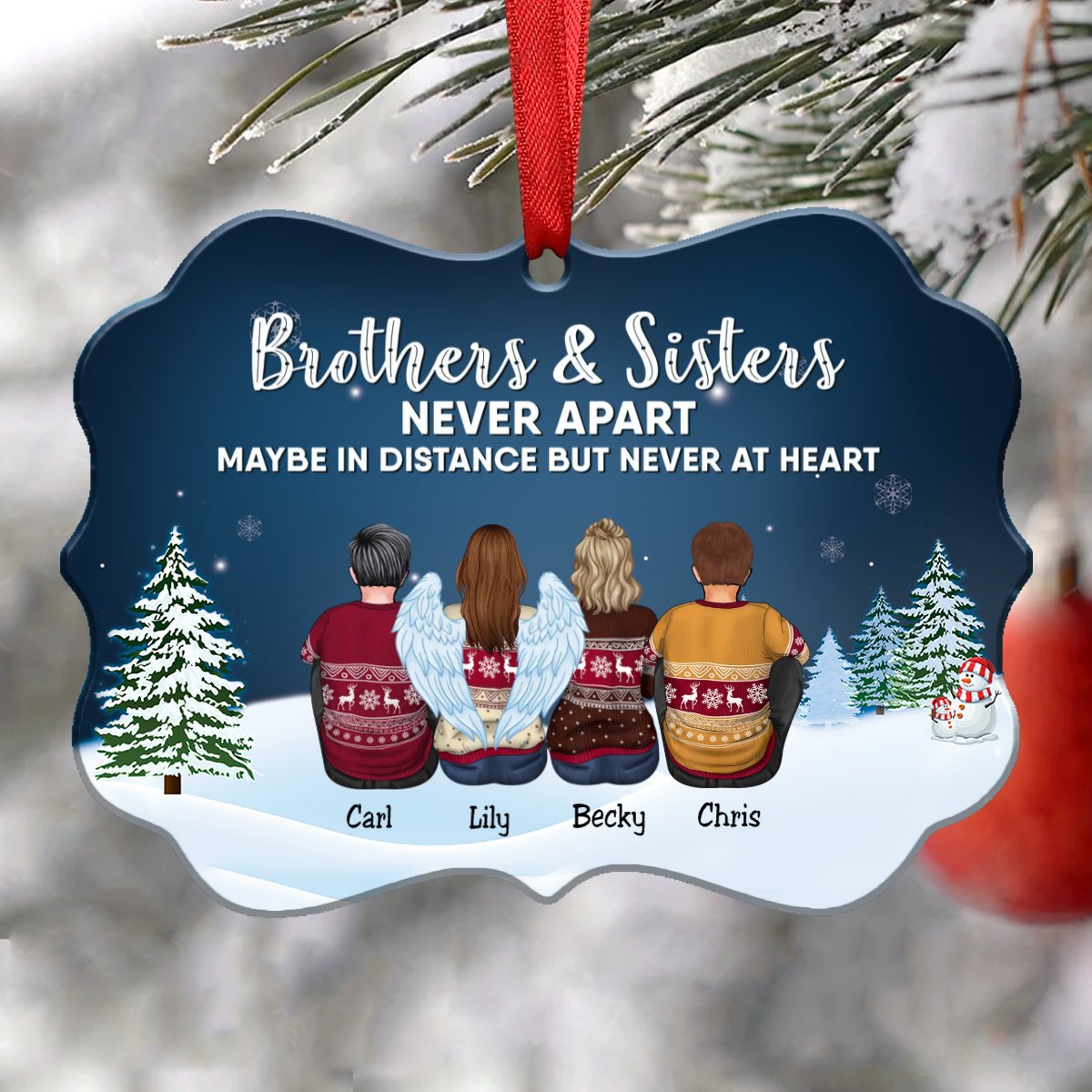 Family - Brothers & Sisters Never Apart Maybe In Distance But Never At Heart - Personalized Christmas Ornament