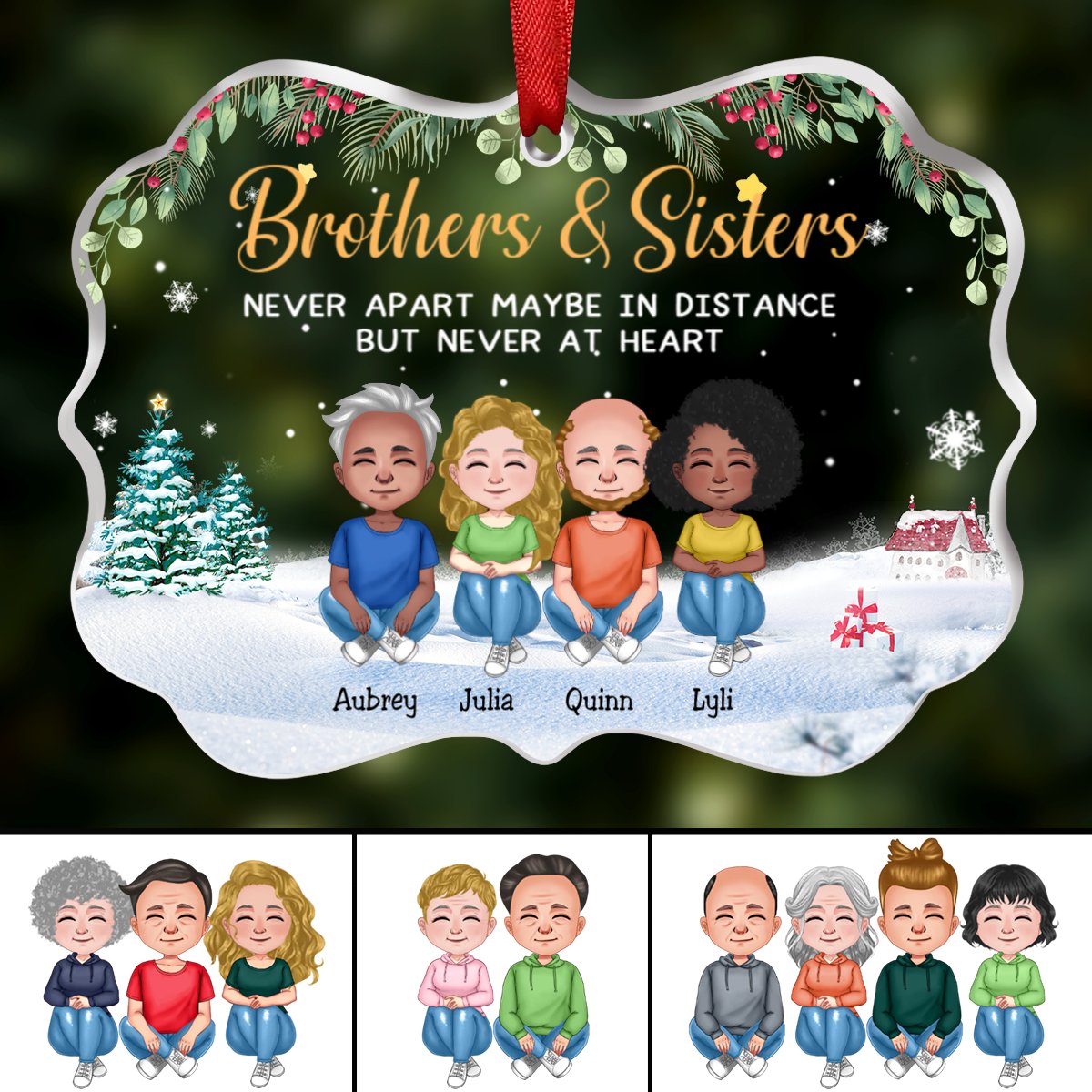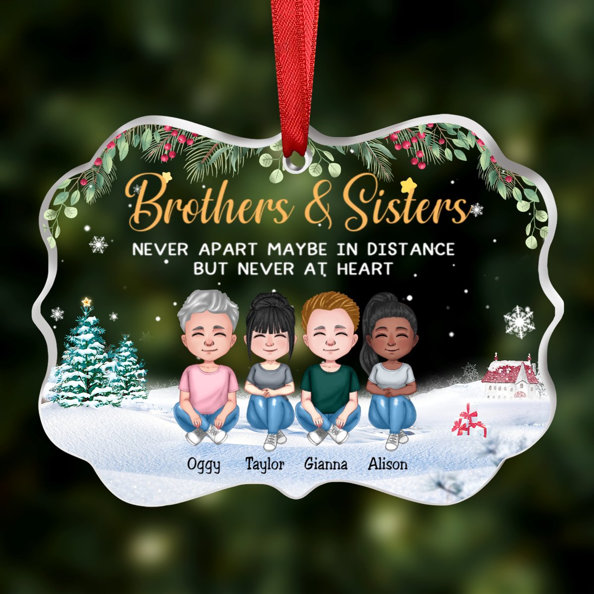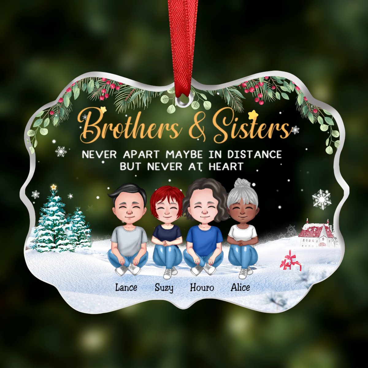 Family - Brothers & Sisters Never Apart Maybe In Distance But Never At Heart - Personalized Transparent Ornament (Ver 2)