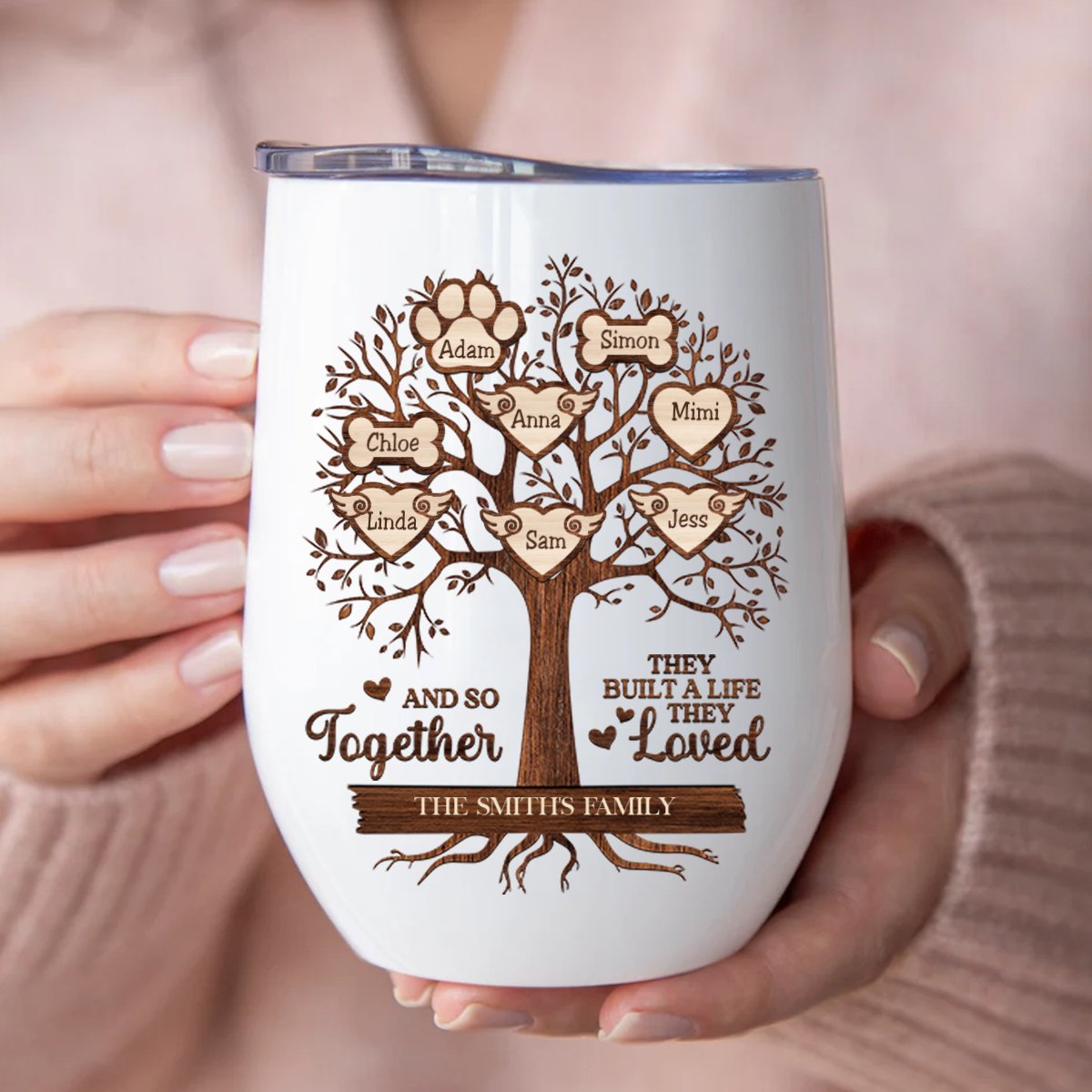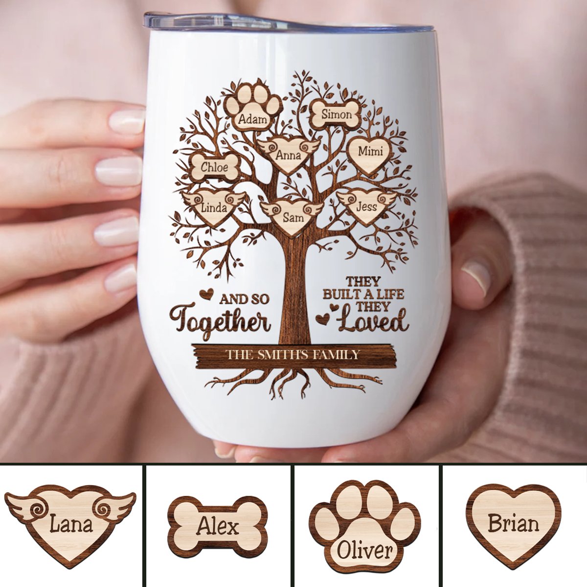 Family - Christmas Family Tree And So Together They Built A Life They Loved - Personalized Wine Tumbler (BU)