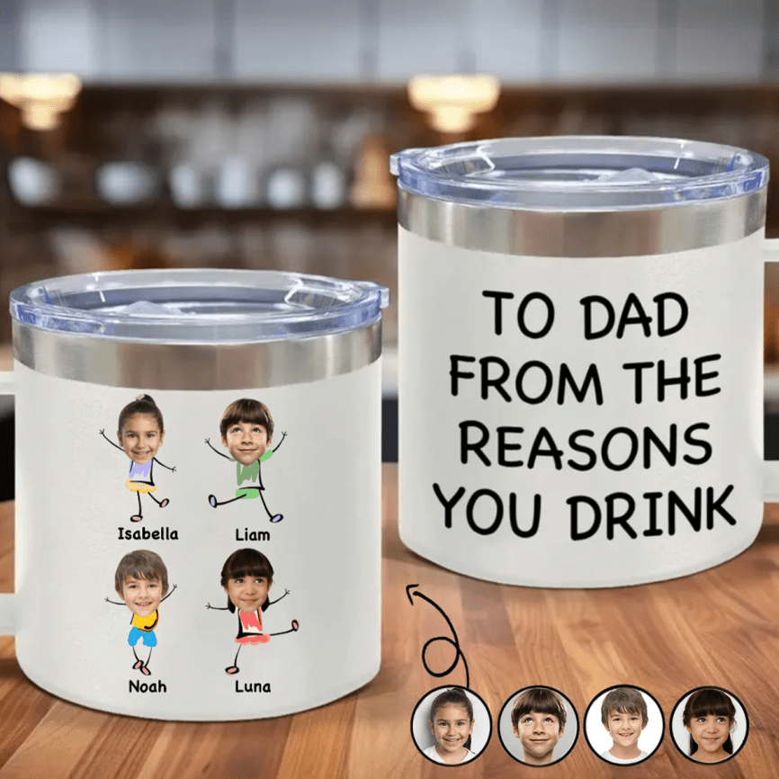 Family - Custom Photo To Dad From The Reasons You Drink - Personalized 14oz Stainless Steel Tumbler With Handle