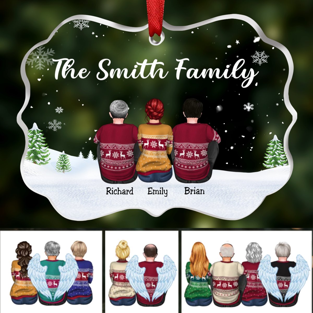 Family - Family Dad Mom Snow Background - Personalized Transparent Ornament