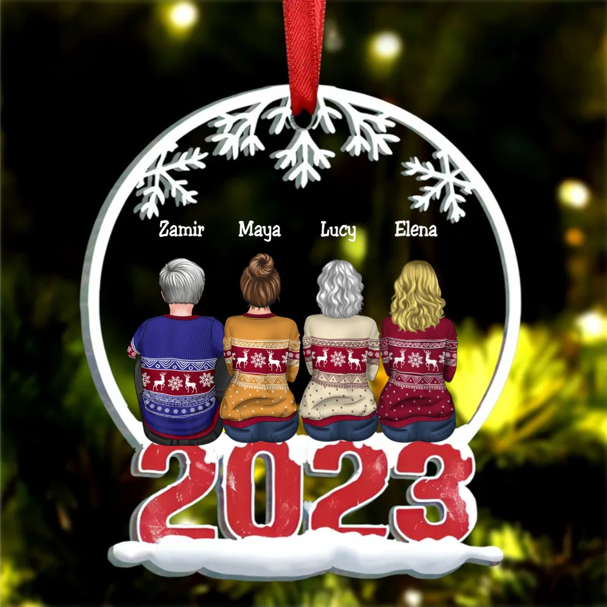 Family - Family Sitting Together - Personalized Circle Ornament (KE)