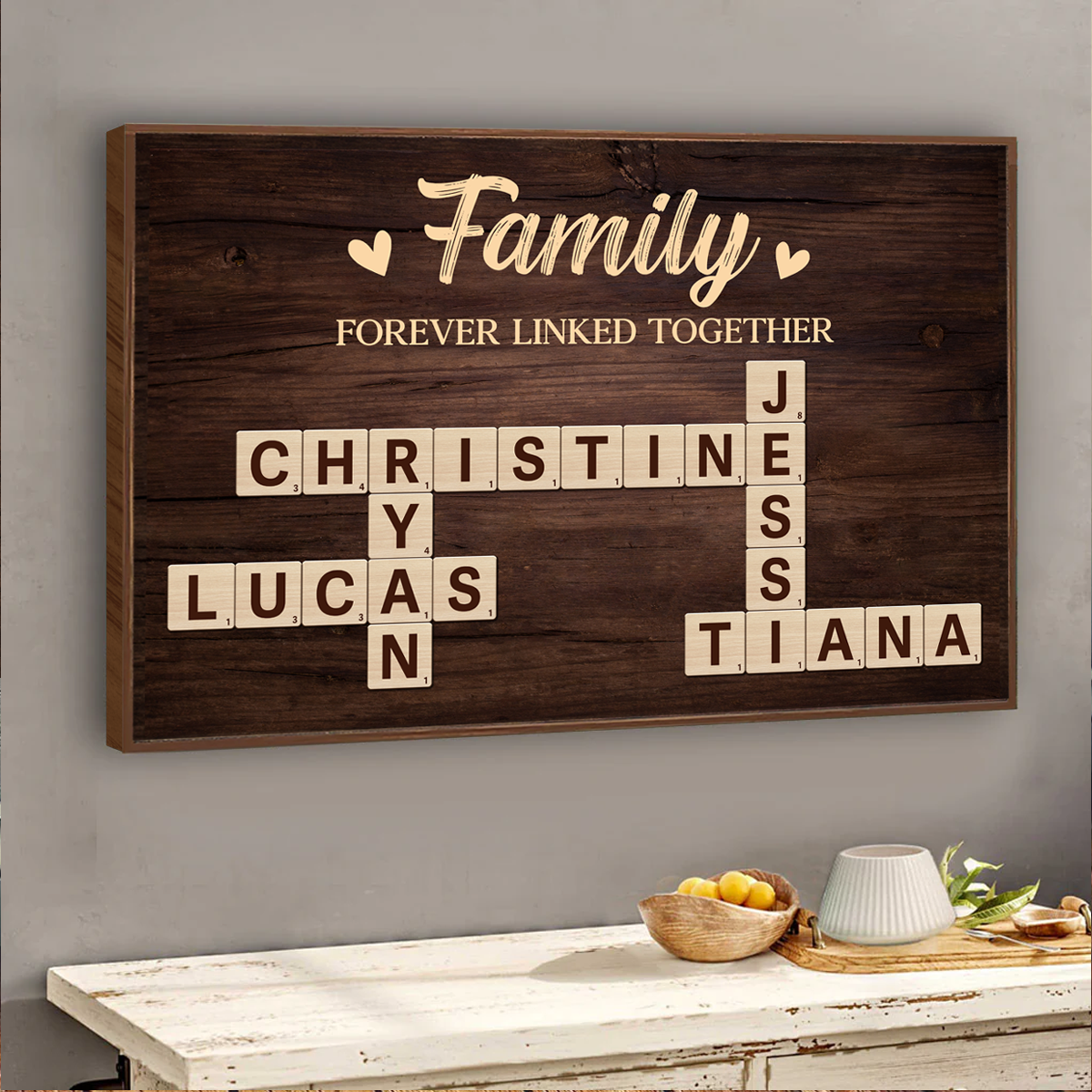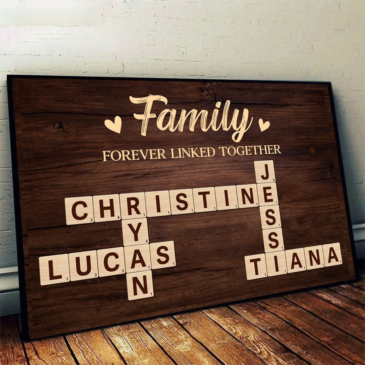 Family Forever Linked Together Crossword Puzzle Personalized Poster, Gift For Large Family, Parent, Grandparents, Siblings, Brothers, Sisters