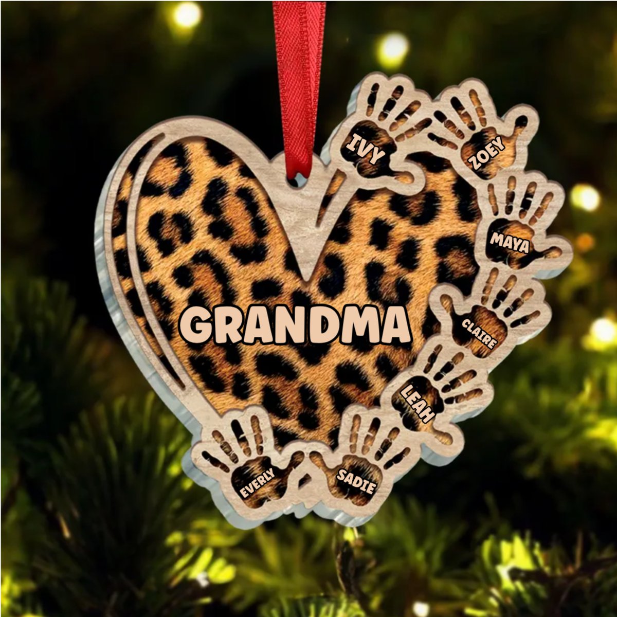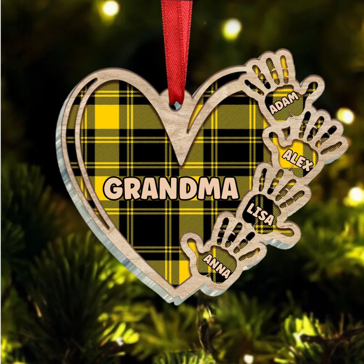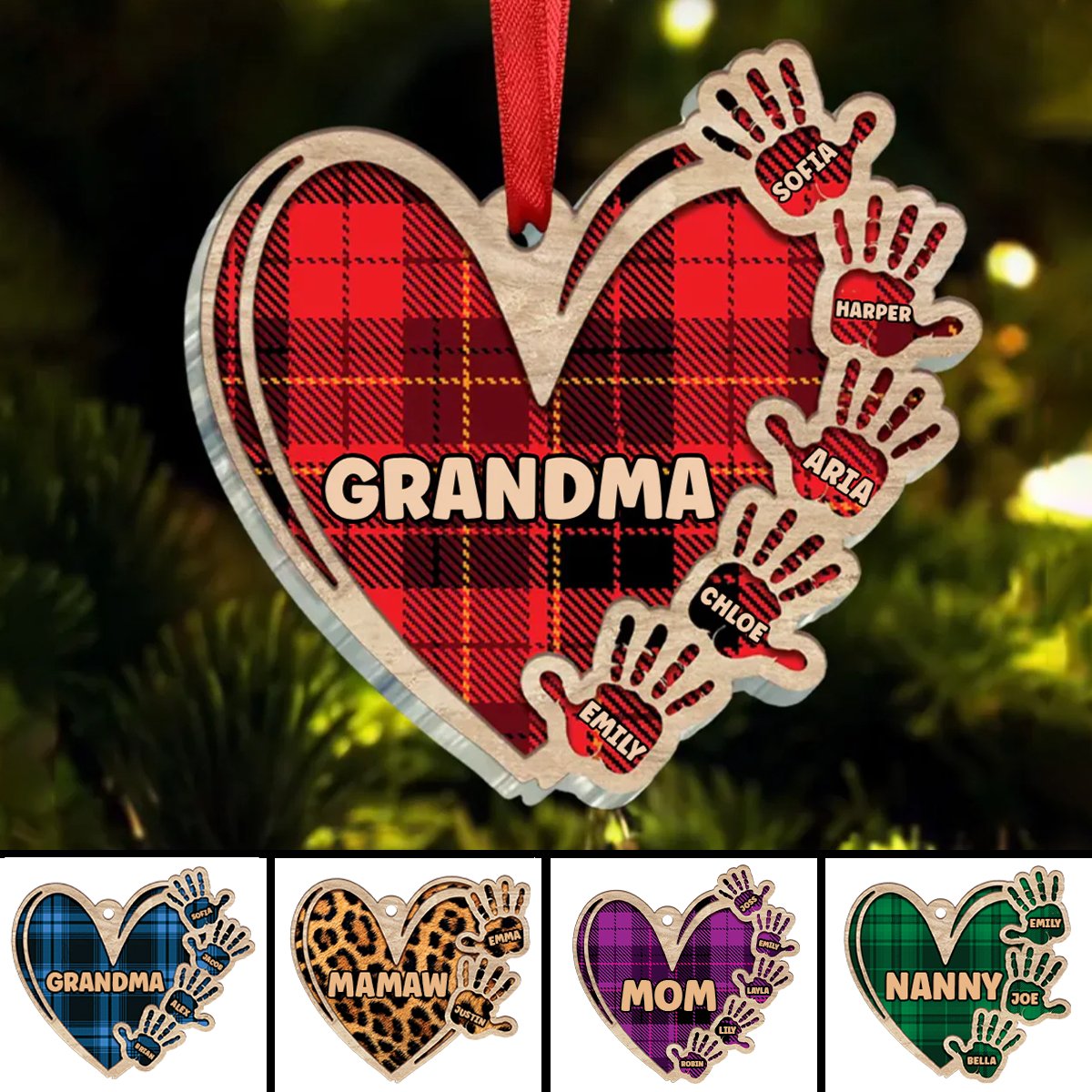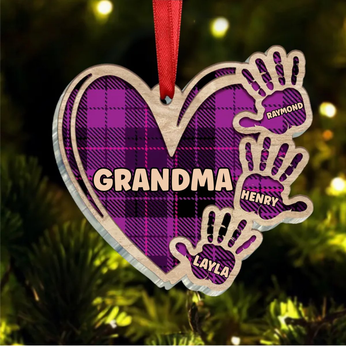 Family - Grandma Mom Heart Hand Print - Personalized Ornament