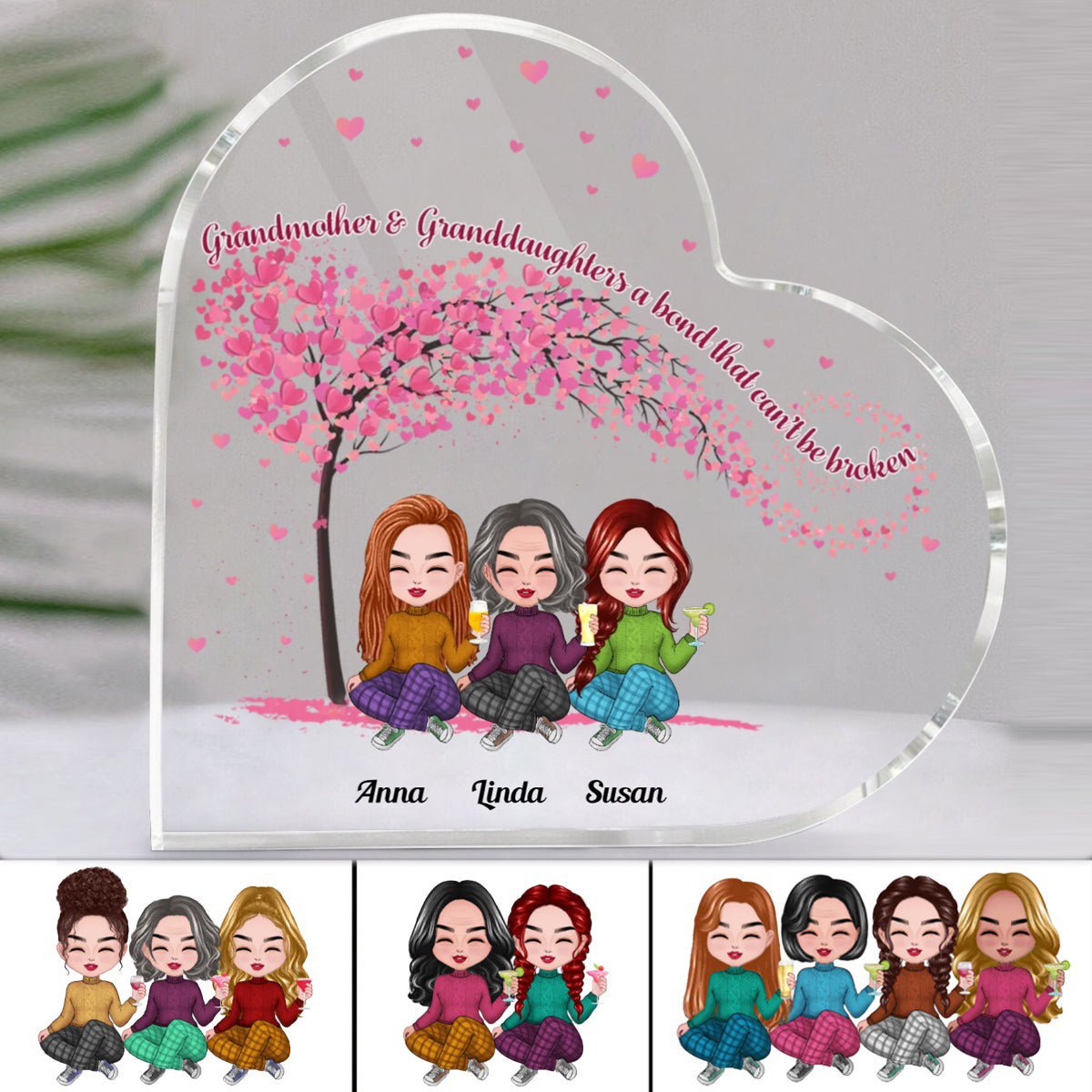 Family - Grandmother & Granddaughters A Bond That Can't Be Broken - Personalized Acrylic Plaque (HEART)