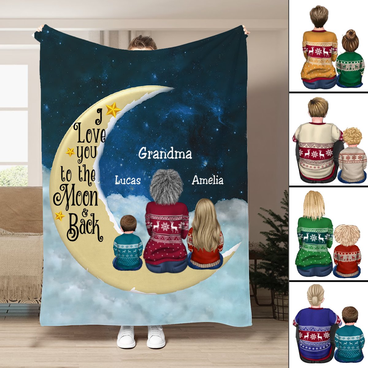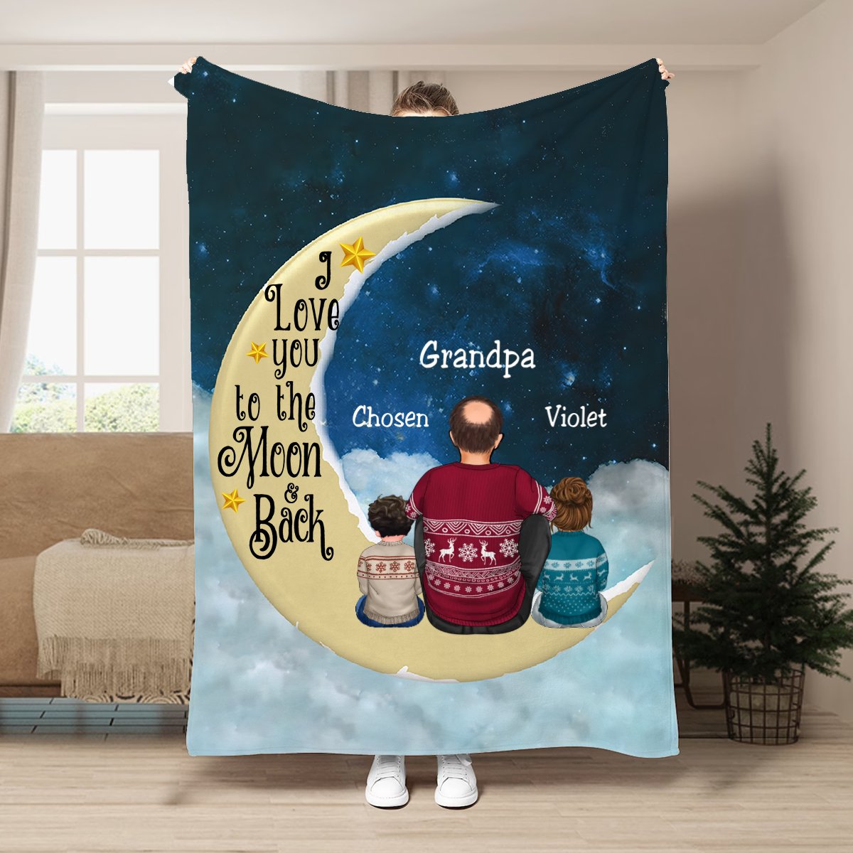 Family - I Love You To The Moon And Back - Personalized Blanket