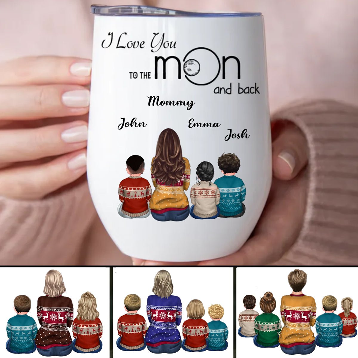 Family - I Love You To The Moon And Back - Personalized Wine Tumbler