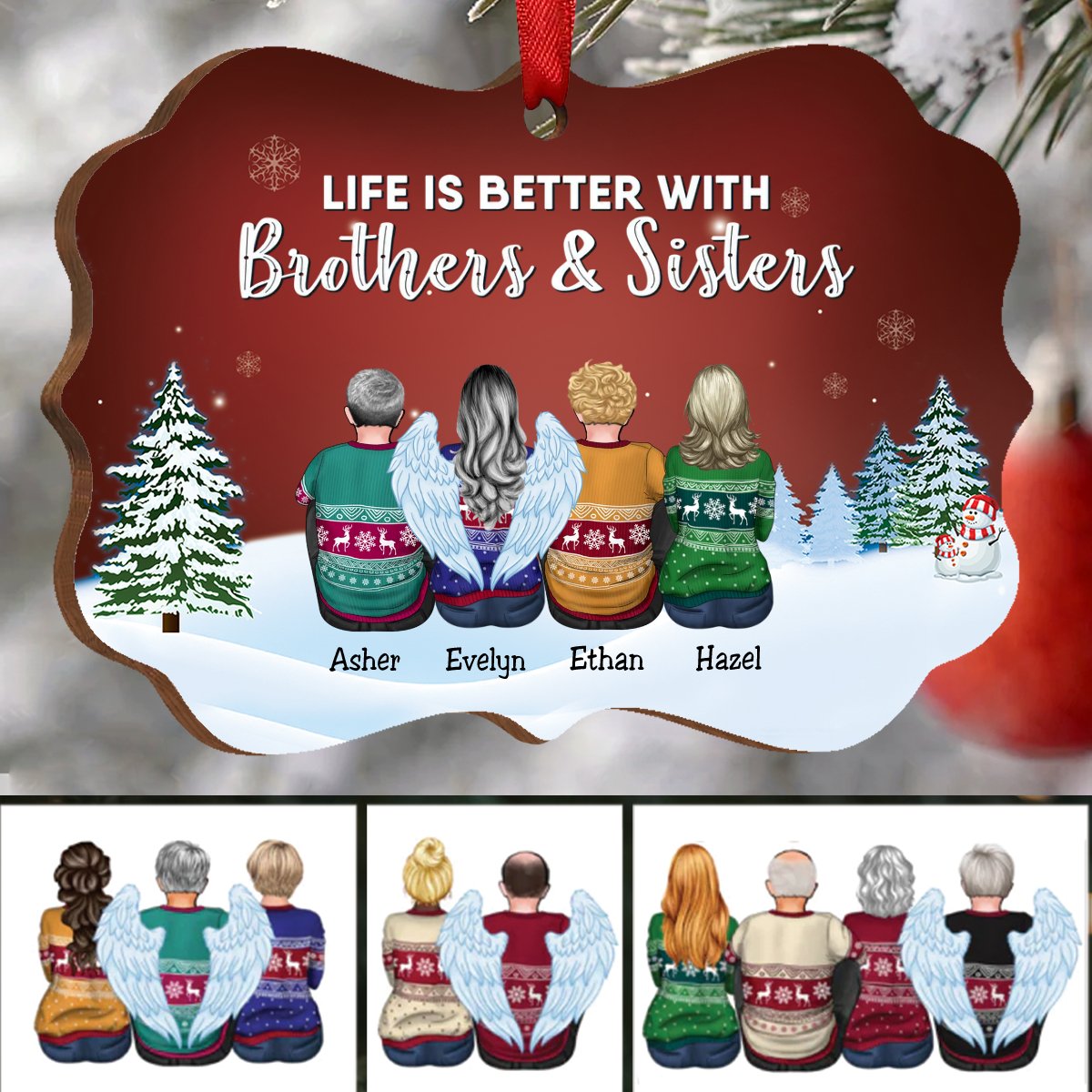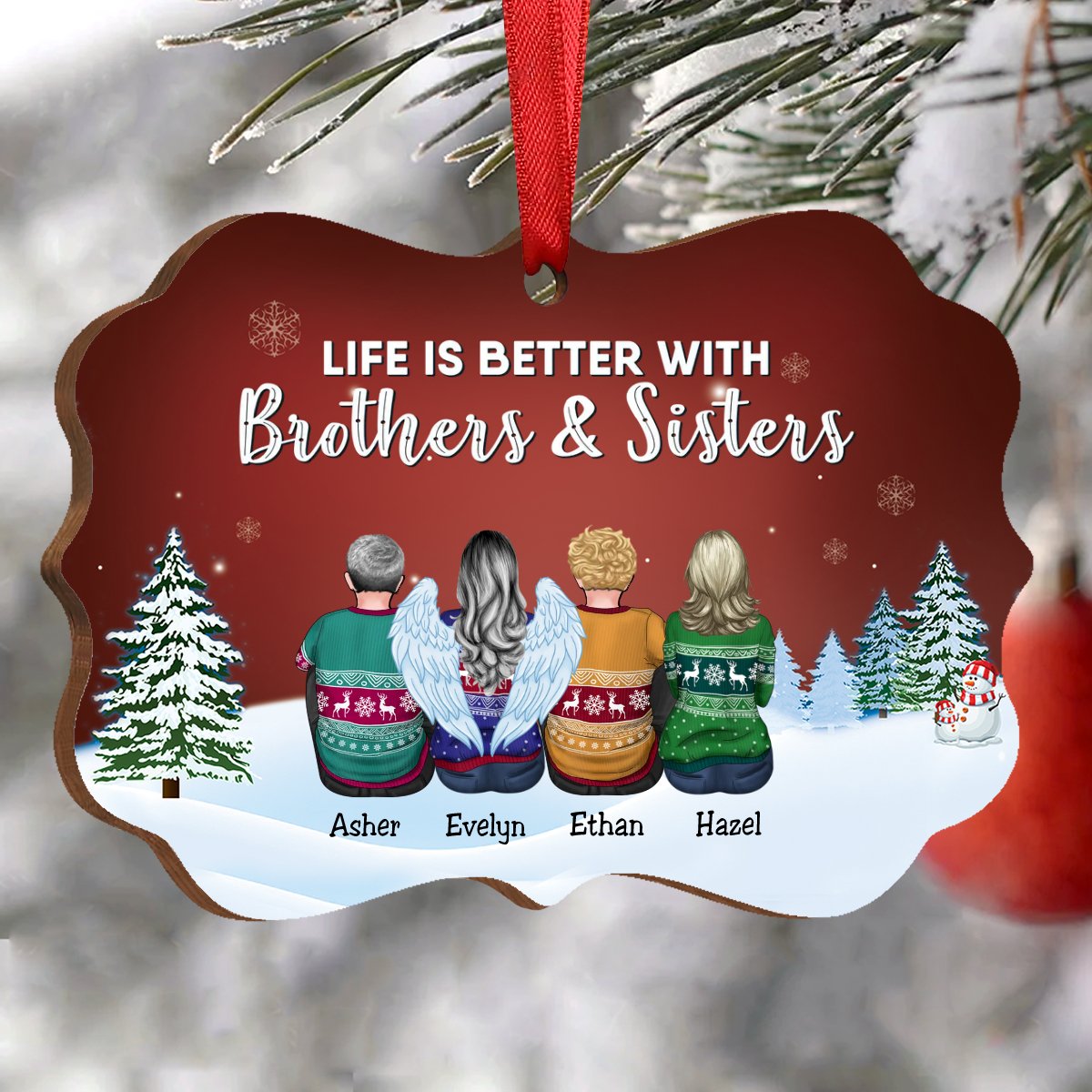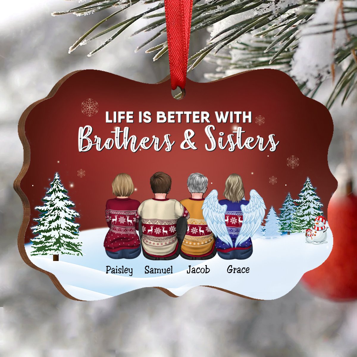 Family - Life Is Better With Brothers & Sisters - Personalized Christmas Ornament (Red)