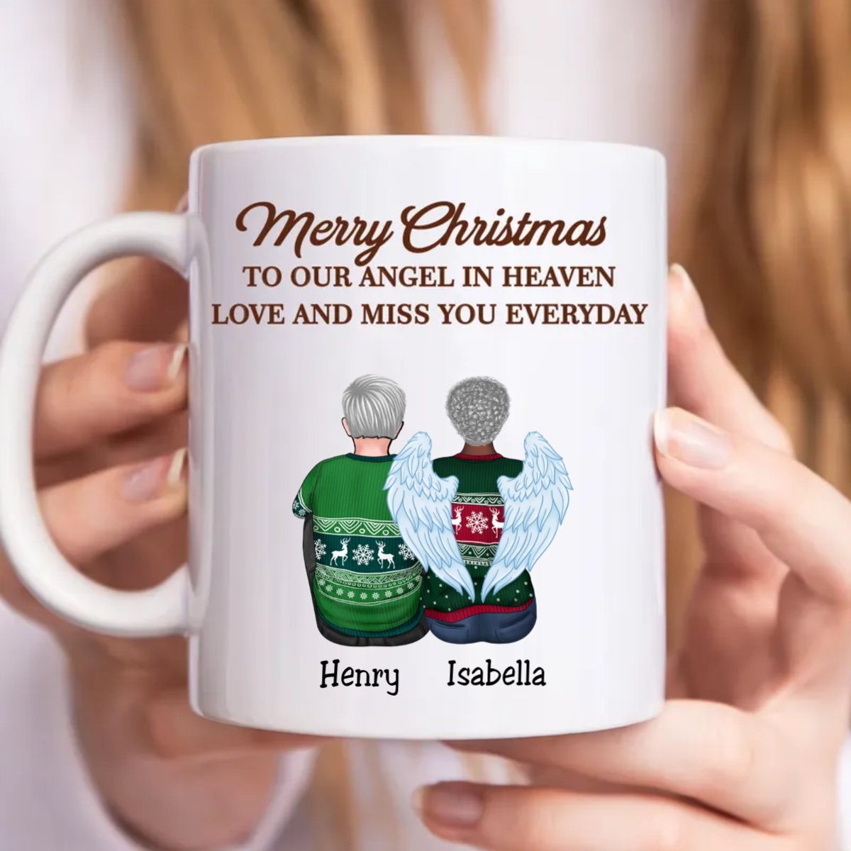 Family - Merry Christmas To Our Angel In Heaven Love And Miss You Everyday - Personalized Mug (VT)
