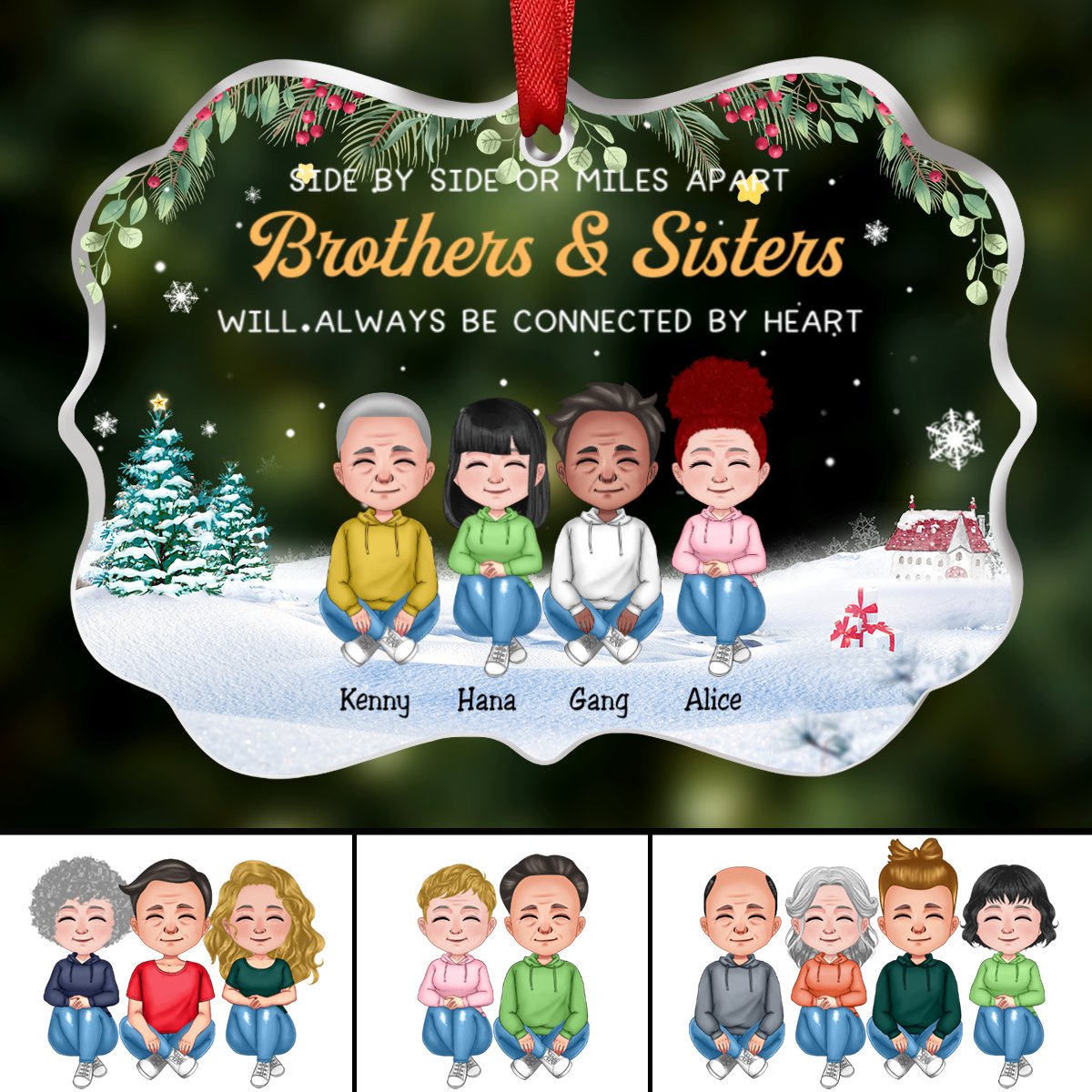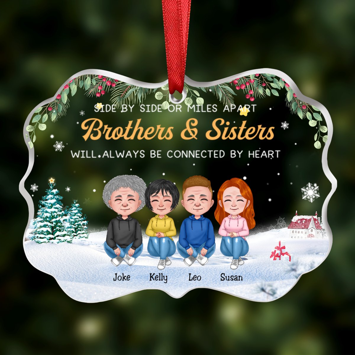 Family - Side By Side Or Miles Apart Brothers & Sisters Will ALways Be Connected By Heart - Personalized Transparent Ornament (Ver 2)