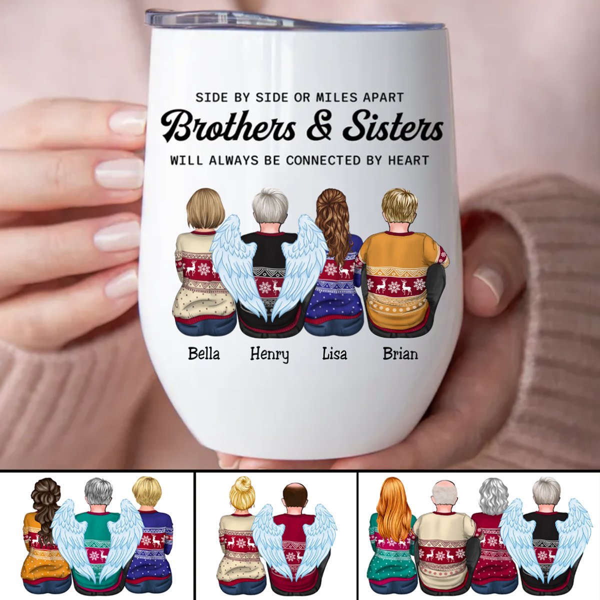 Family - Side By Side Or Miles Apart Brothers & Sisters Will ALways Be Connected By Heart - Personalized Wine Tumbler