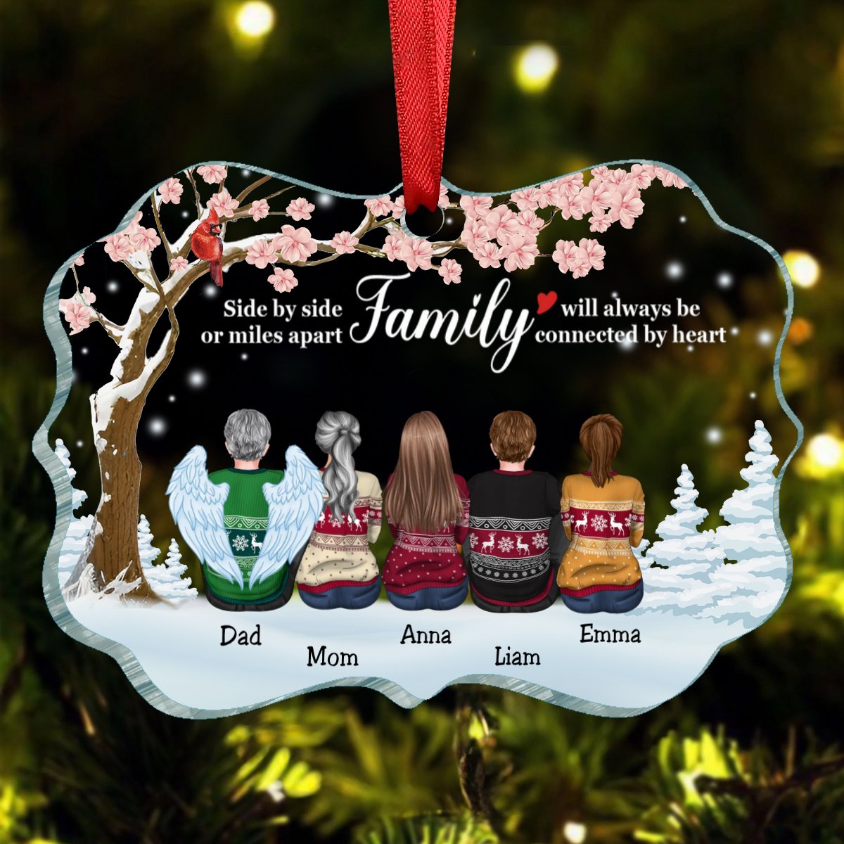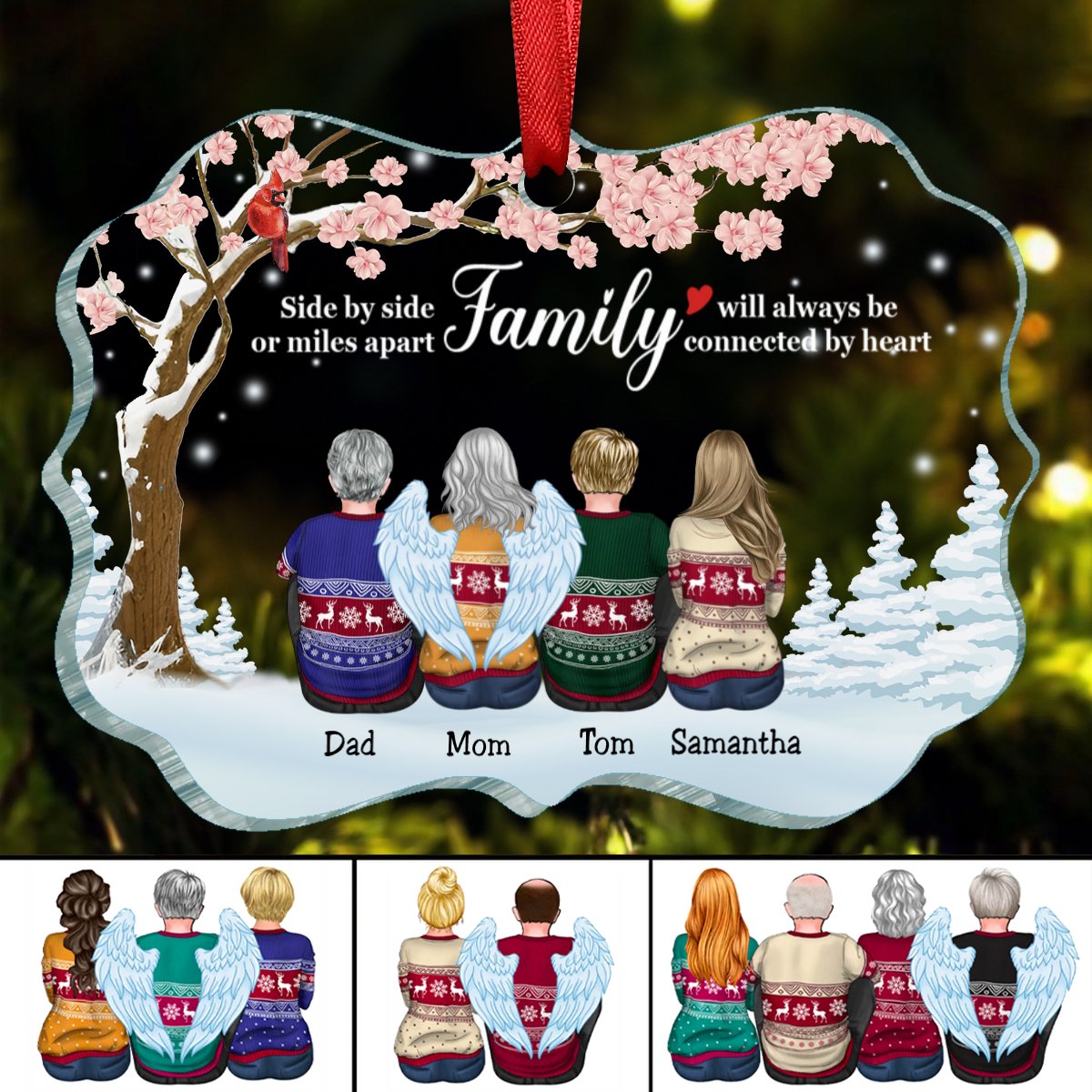 Family - Side By Side Or Miles Apart Family Will Always Be Connected By Heart - Personalized Acrylic Ornament