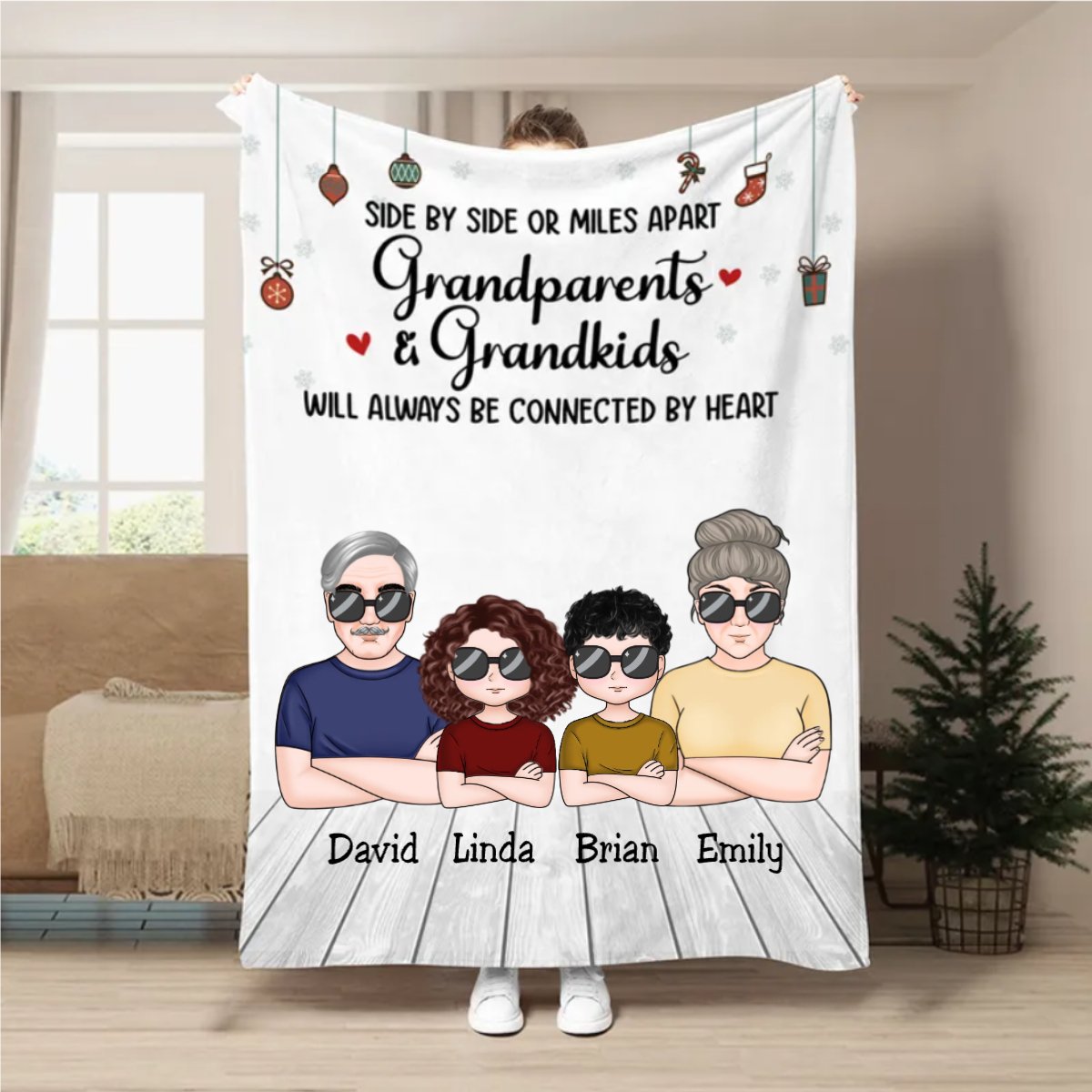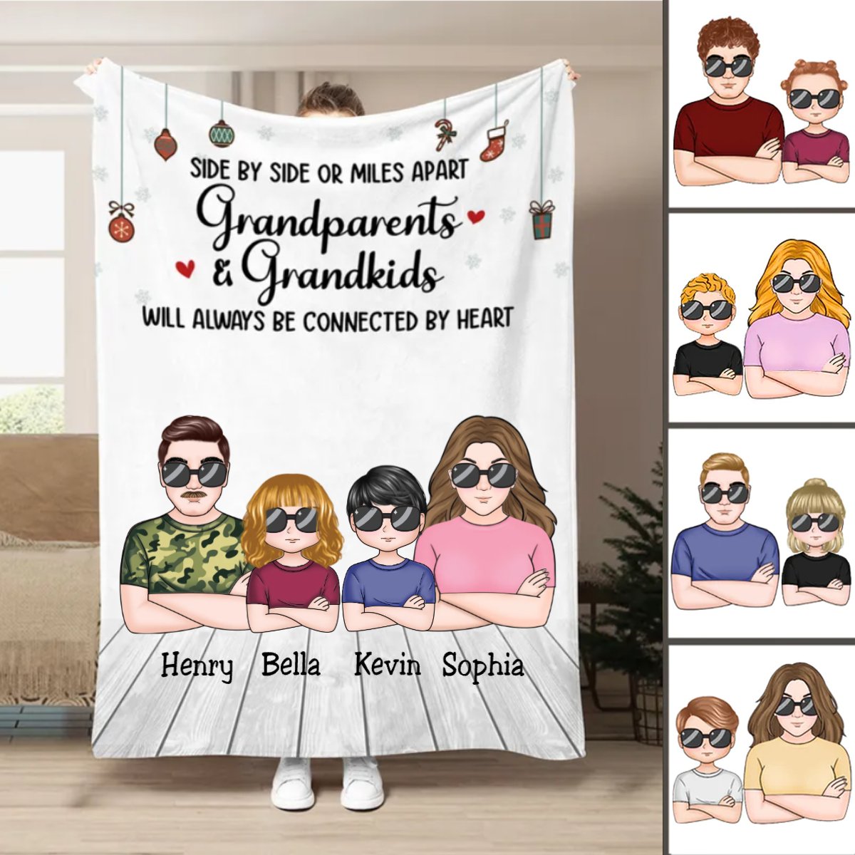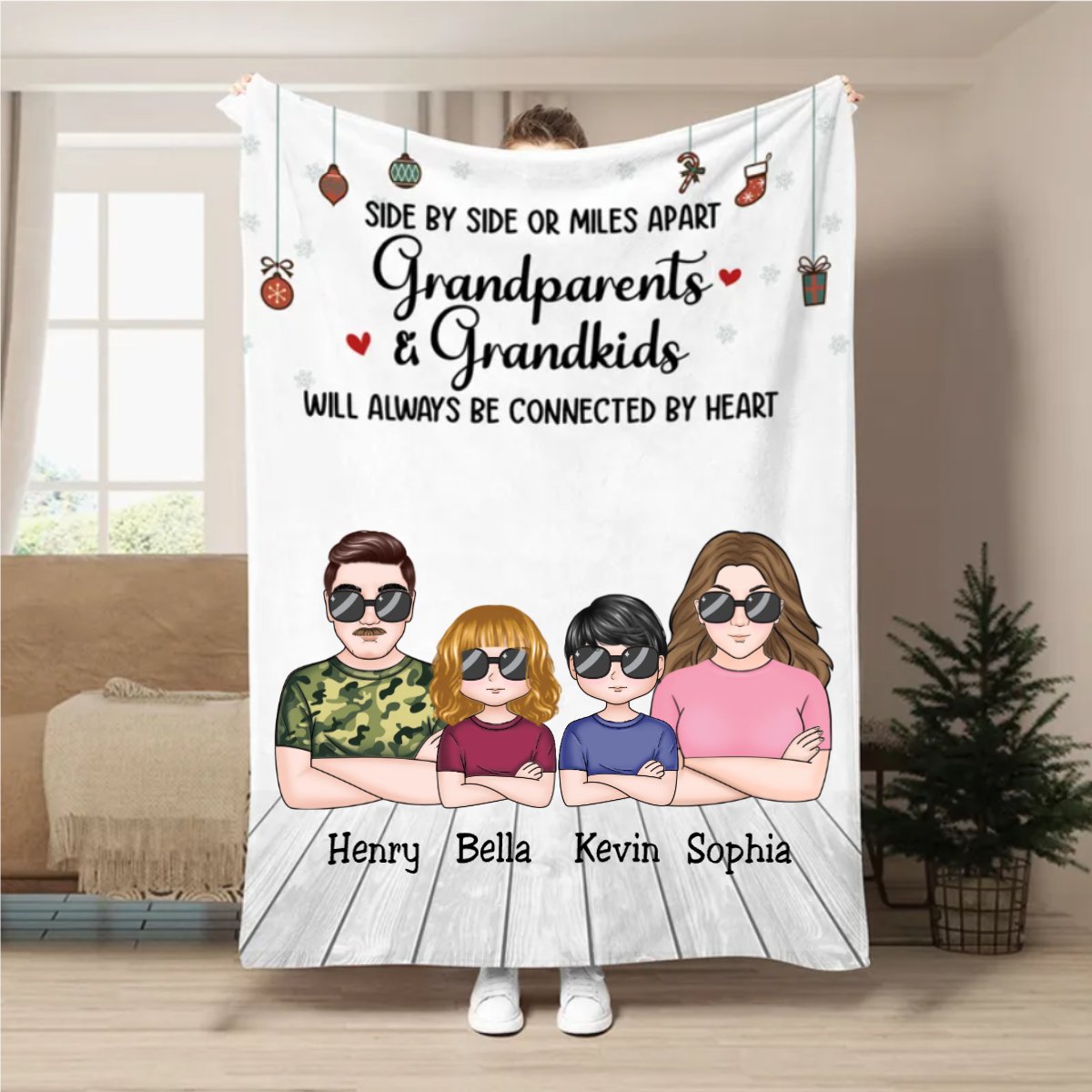 Family - Side By Side Or Miles Apart Grandparents & Grandkids Will Always Be Connected By Heart - Personalized Blanket