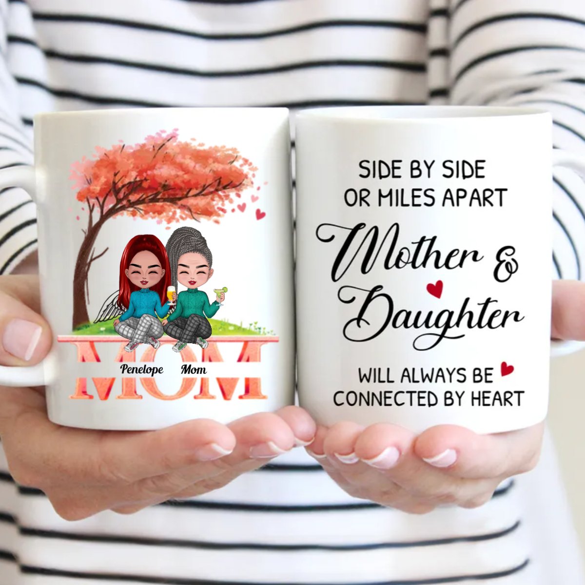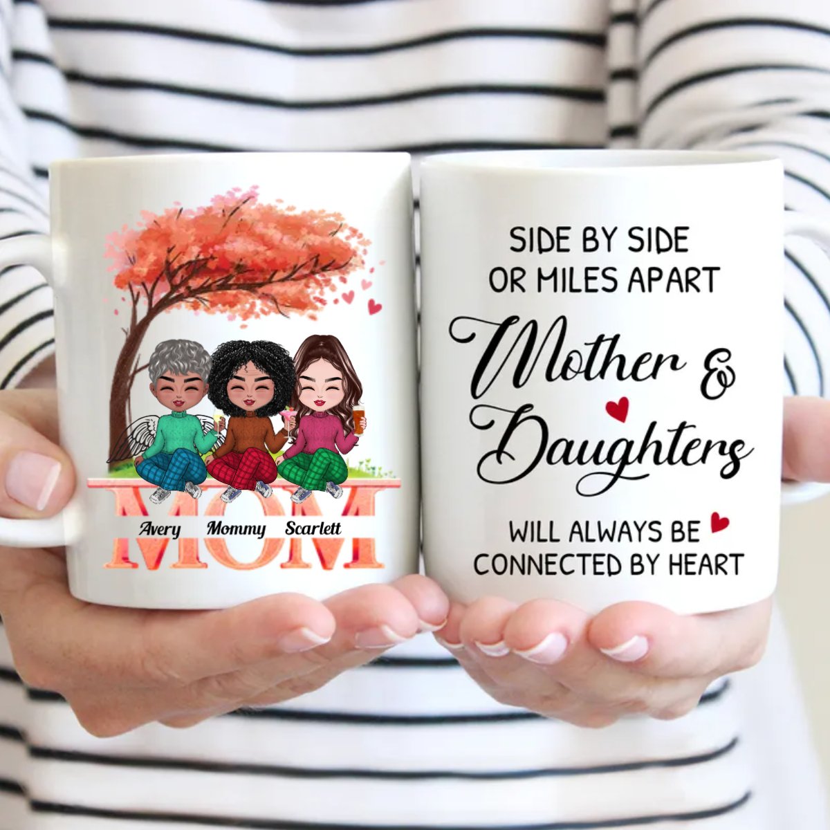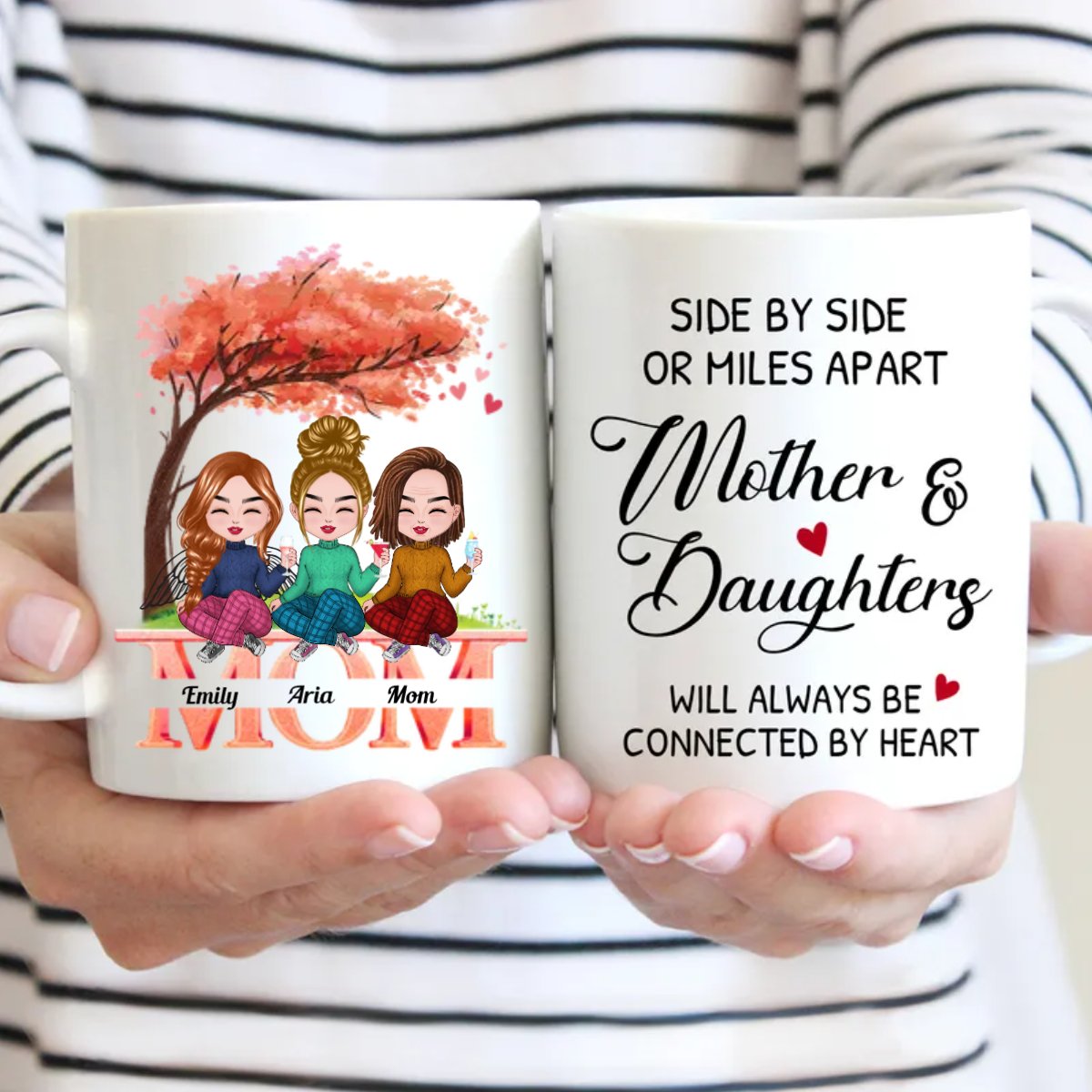 Family - Side By Side Or Miles Apart, Mother And Daughters Will Always Connected By Heart - Personalized Mug (NM)
