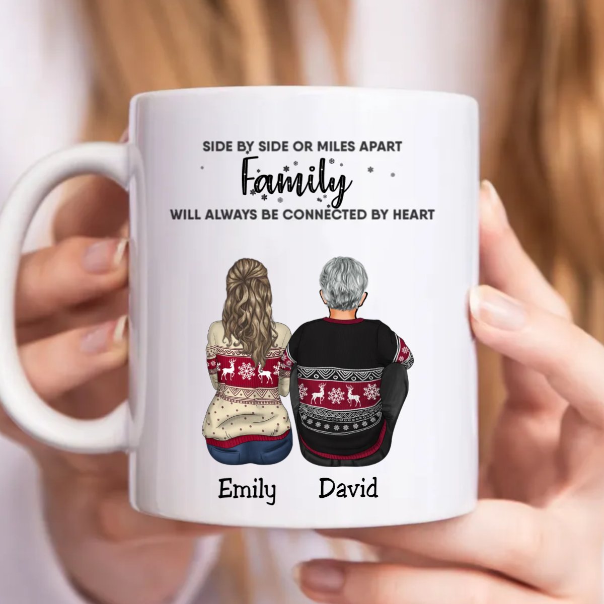 Family - Side By Side Or Miles Apart ... Will Always Be Connected By Heart - Personalized Mug