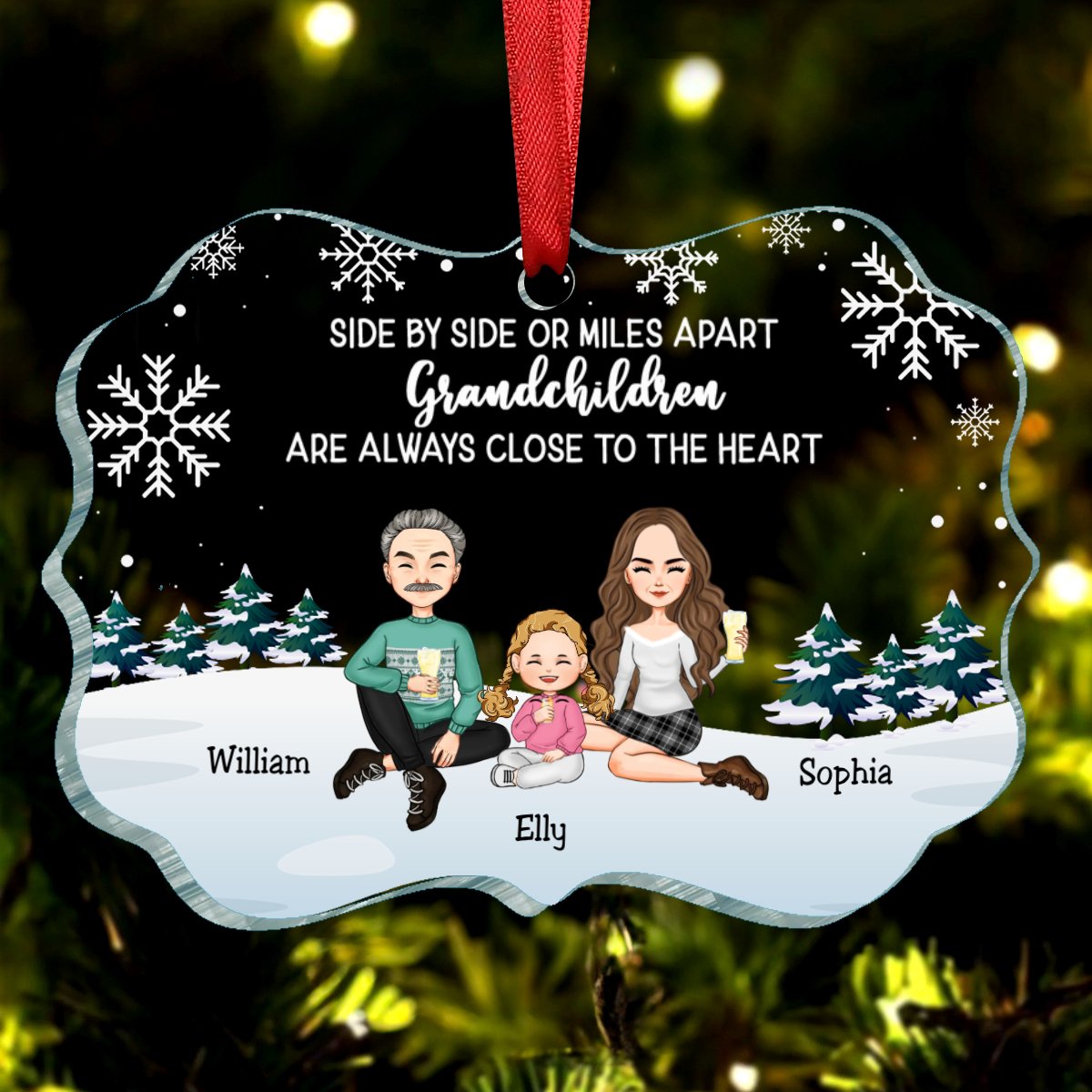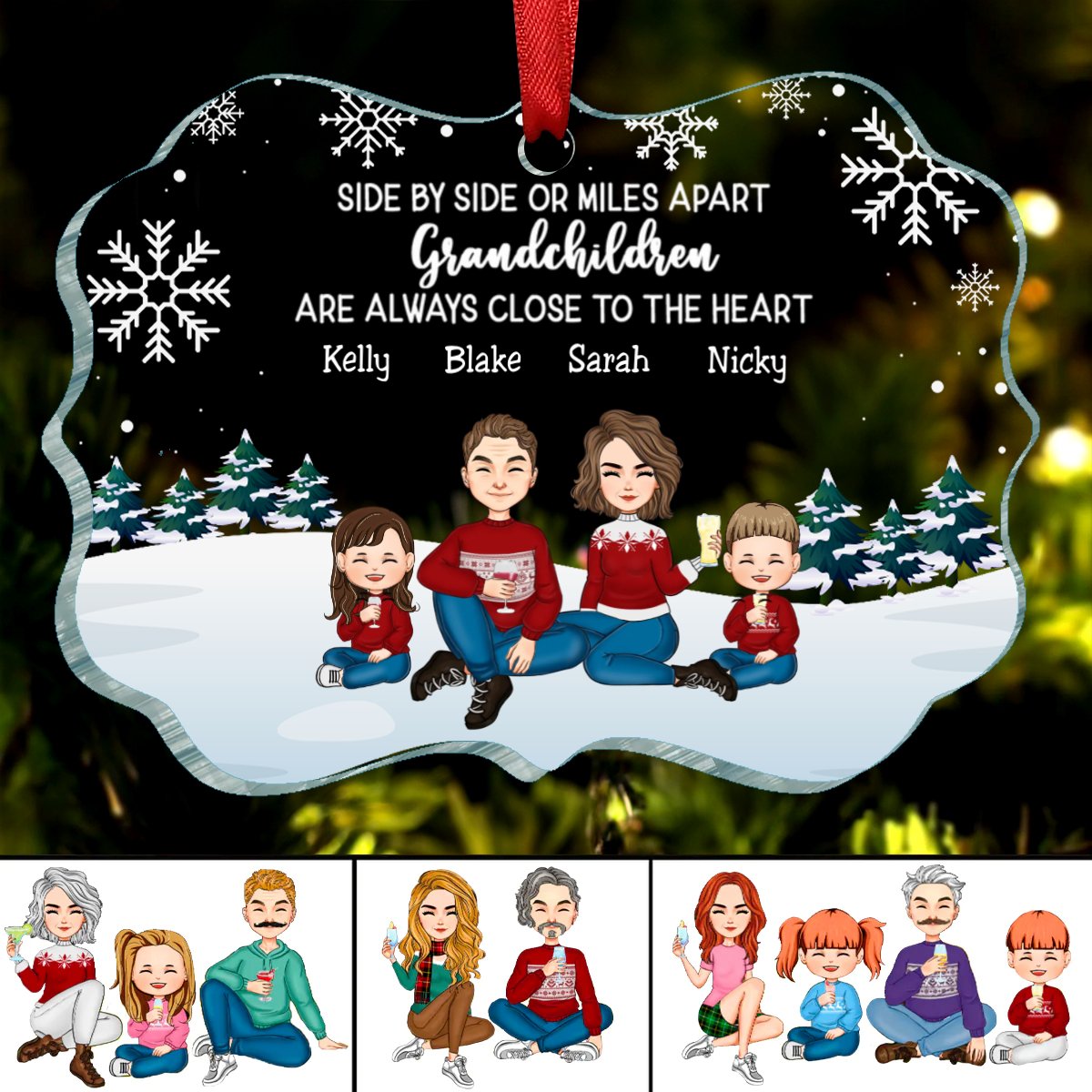 Family - Side By Side or Smiles A Part Grandchildren Are Always Close To The Heart - Personalized Acrylic Ornament