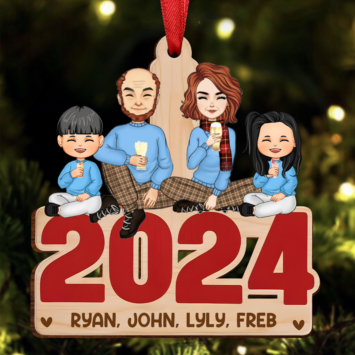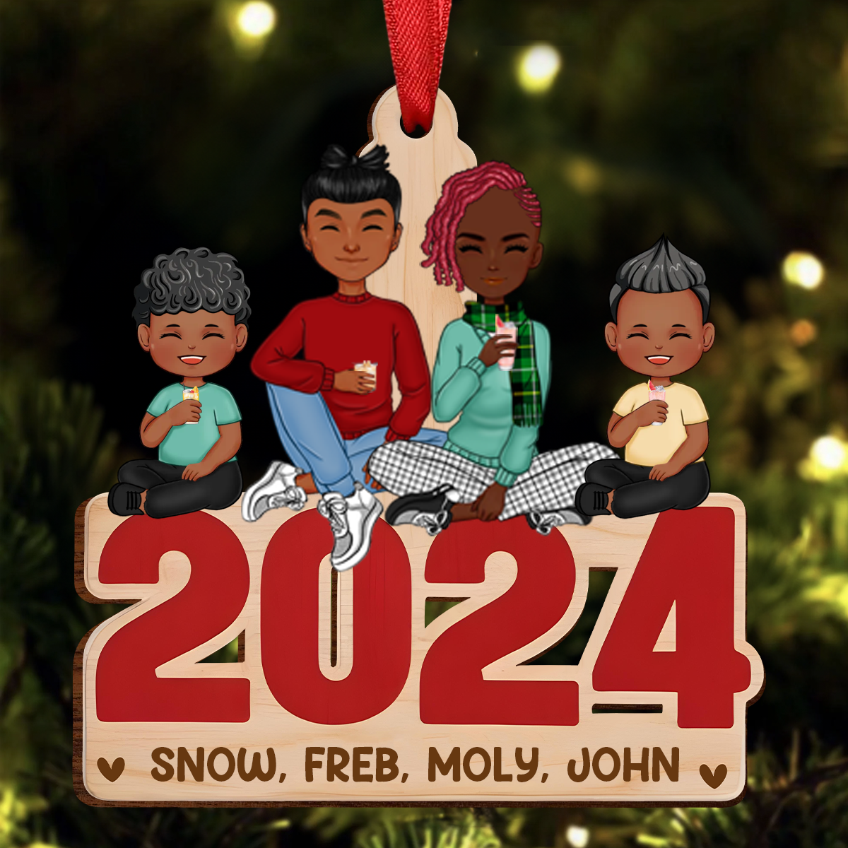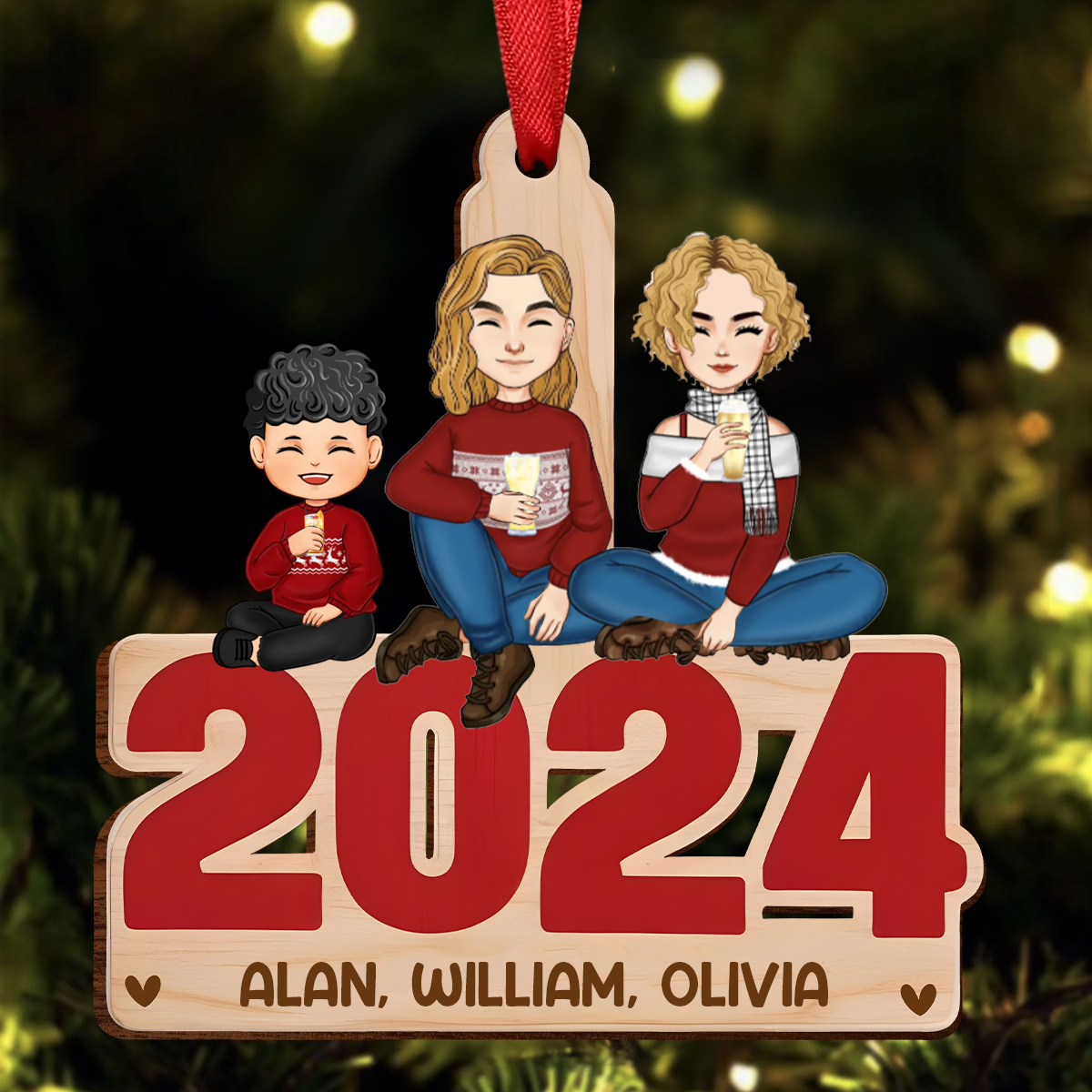 Family Sitting Together - Family Personalized Custom Ornament - Wood Unique Shaped